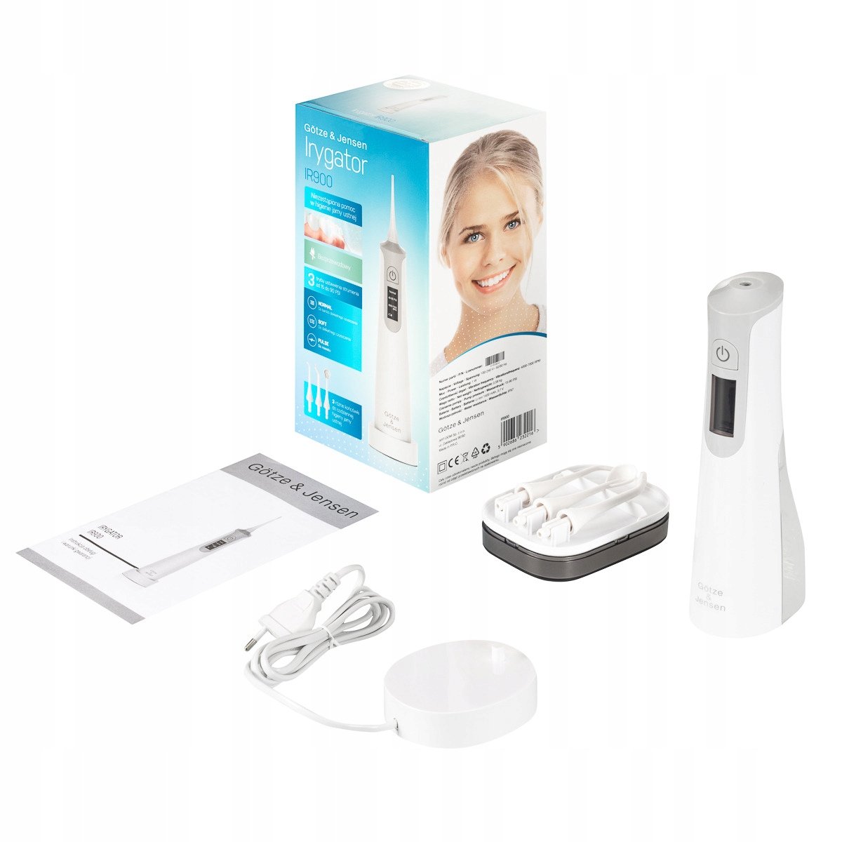 Irygator GÖTZE & JENSEN IR900 w swoim zestawie zawiera instrukcję obsługi w języku polskim, 3 końcówki oraz ładowarkę.