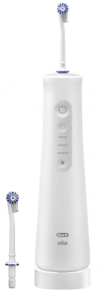 Oral-B Aquacare Pro-Expert Irygator z technologią OxyjetZadbaj o higienę jamy ustnej z irygatorem Oral-B Aquacare Pro-Expert wyposażonym w technologię Oxyjet dla bardziej efektywnej pielęgnacji dziąseł. Cechy i właściwości: Technologia Oxyjet: technologia czyszczenia oparta na wodzie wzbogaconej mikropęcherzykami Tryb „na żądanie”: możliwość kontroli ciśnienia wody dla precyzyjnego czyszczenia 3 poziomy intensywności: możliwość wyboru intensywnego, średniego lub delikatnego trybu ciśnienia wody podczas mycia zębów 2 rodzaje strumieni: możliwość wyboru skoncentrowanego lub obrotowego strumienia wody do delikatnego czyszczenia przestrzeni międzyzębowych Zasilanie akumulatorowe: łatwa, bezprzewodowa obsługa Dba o aparaty ortodontyczne: delikatnie usuwa pokarm zgromadzony pomiędzy drucikami aparatów