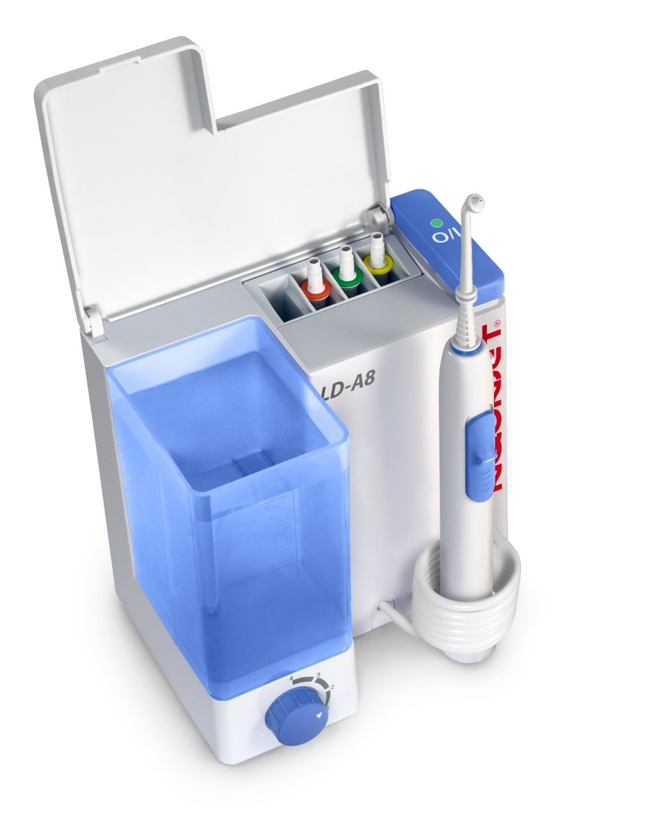 Irygator stanowi bardzo dobre uzupełnienie szczoteczki do zębów. Pozwoli on na dotarcie do niedostępnych dla innych urządzeń miejsc w jamie ustnej. Jego działanie polega na wytwarzaniu wody pod ciśnieniem. Dokładnie płucze ona zalegające nieczystości. AQUAJET LD-A8 posiada zasilanie akumulatorowe, a pojemność zbiornika na wodę wynosi 500 ml.