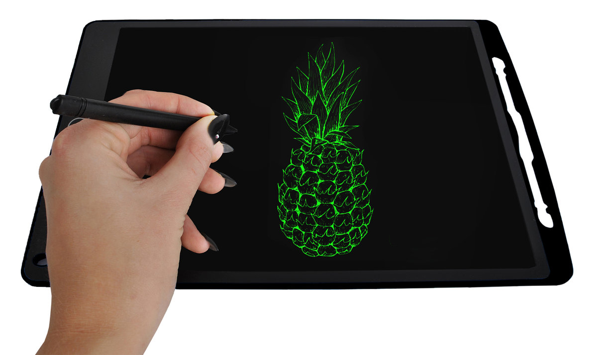 Tablet XXL do rysowania i bądź pisania jest to świetny gadżet zarówno dla dzieci jak i dorosłych. Ekran o przekątnej 12” jaki w nim zastosowano jest niełamliwy, co znacznie podnosi jego bezpieczeństwo szczególnie podczas transportowania; jest całkowicie odporny na wstrząsy. Tablet wymaga jedynie korzystania z rysika, który jest dołączony do zestawu (jeżeli będziesz chciał / chciała szybko coś zapisać, a w pobliżu nie będzie rysika wystarczy, że użyjesz czegokolwiek, tablet reaguje nawet na paznokieć!).
