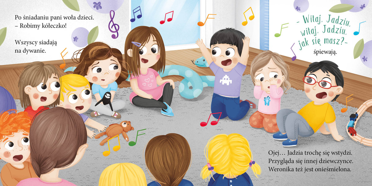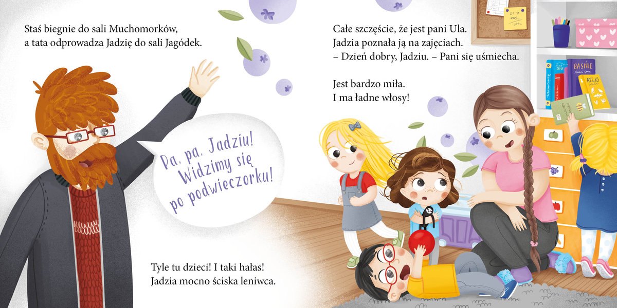 Jest poniedziałek. Wyjątkowy poniedziałek. Jadzia Pętelka idzie do przedszkola! To tutaj razem z tatą odprowadzała Stasia. Ale dziś spędzi dzień w grupie Jagódek. Bardzo się cieszy, że czekają na nią