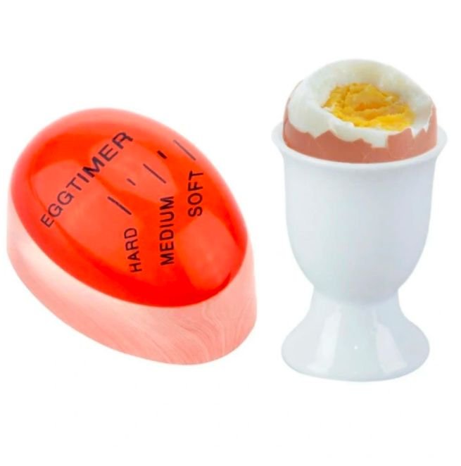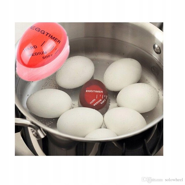 Do jajek, które chcesz ugotować, wkładasz nasz minutnik, a on zmieniając kolor wskaże Ci czy jajka są jeszcze na miękko, już na twardo, a może po środku.