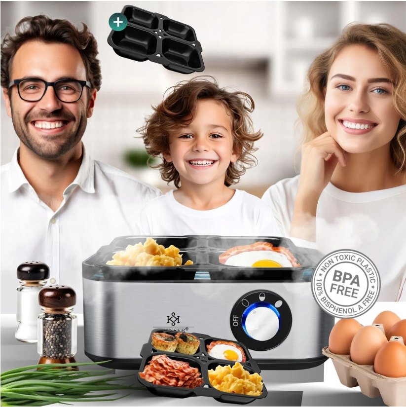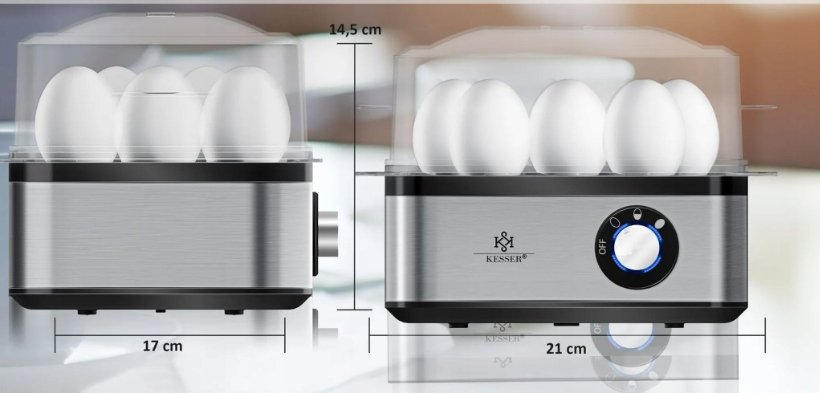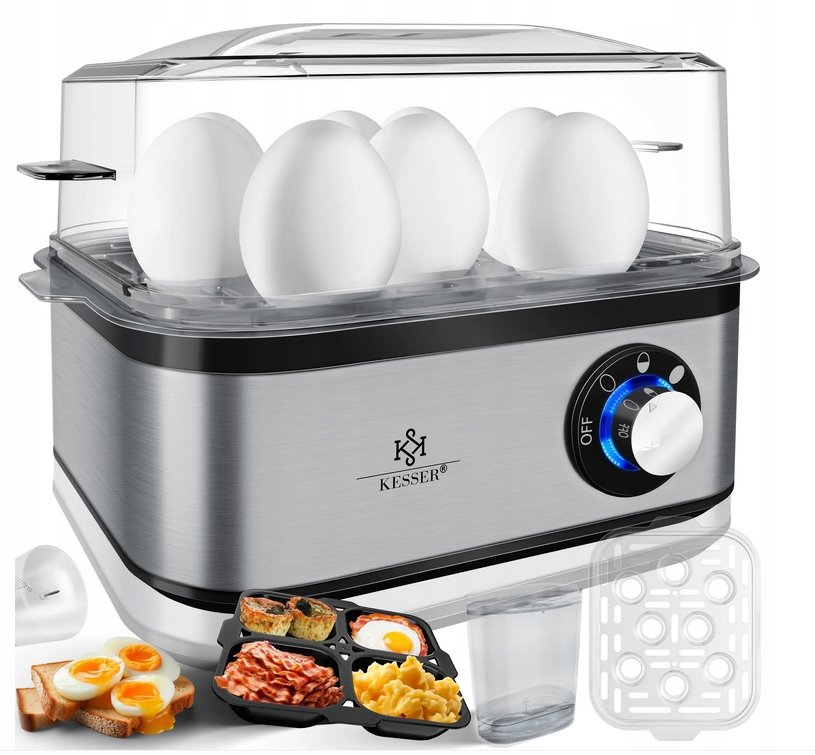 ✅KESSER® Egg Boiler to wielofunkcyjne i wygodne urządzenie kuchenne, które umożliwia przygotowanie idealnych jajek w zaledwie kilka minut. Dzięki mocy 500W i wytrzymałej konstrukcji ze stali nierdzewnej urządzenie świetnie nadaje się do gotowania jajek w różnych stopniach – od miękkich, przez półtwarde, aż po twarde.