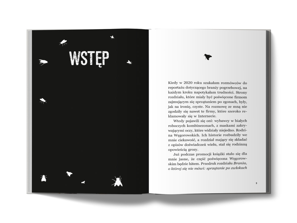 Mateusz Węgorowski jest założycielem jednej z pierwszych firm na polskim rynku, która zajmuje się sprzątaniem funeralnym. Ta książka to zbiór prawdziwych opowieści zza kulis zawodu, o którym wciąż niewiele wiemy. Są w niej opisy trudnych, niemal surrealistycznych sytuacji, takich jak sprzątanie zębów wbitych w ścianę po wybuchu granatu, ale też refleksje i spostrzeżenia dotyczące ostatnich chwil wielu Polaków.
