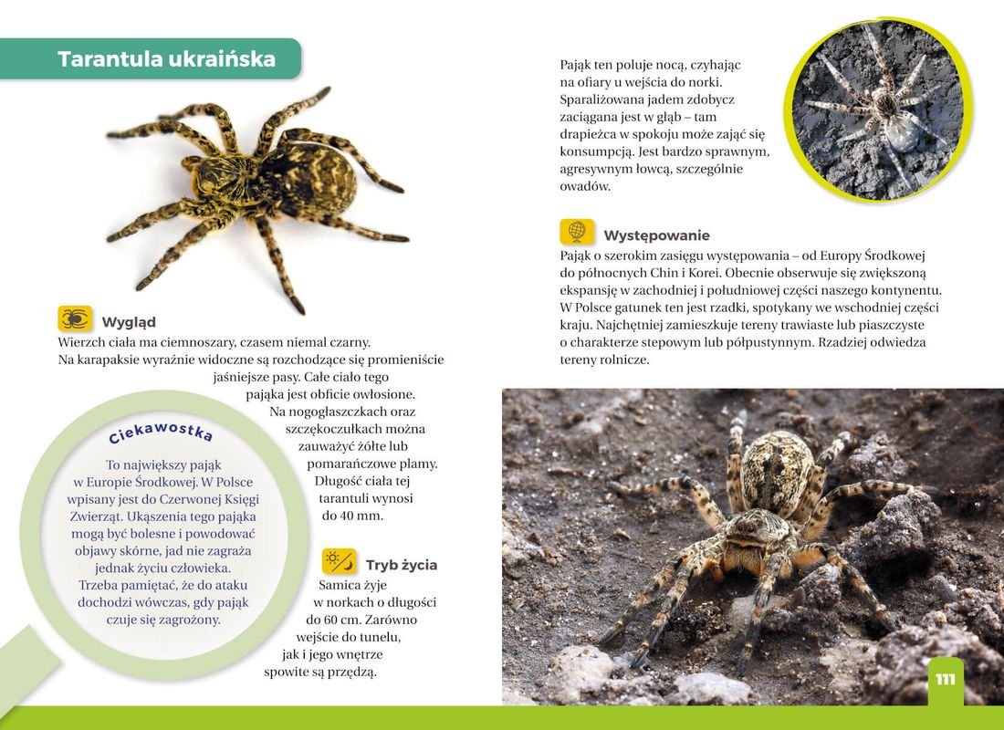 Jaki to pająk? Atlas dla dzieci przedstawia 62 bardziej i mniej znane gatunki pająków świata. Oprócz charakterystyki wyglądu i trybu życia oraz informacji o występowaniu znajdziesz tu również ciekawostki i mnóstwo zdjęć. Dzięki atlasowi poznasz m.in. jadowitego karakurta, sprytną mrówczynkę czy przepięknie barwnego pająka pawiego.