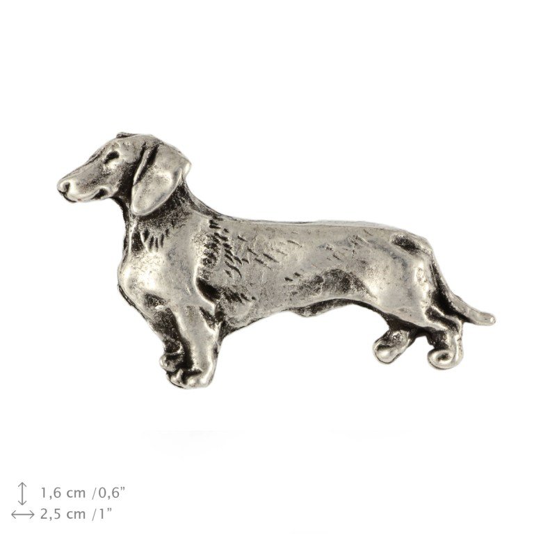 Jamnik szorstkowłosy - posrebrzana broszka z psem, elegancki pin, ozdoba klapy marynarki marki Art-Dog