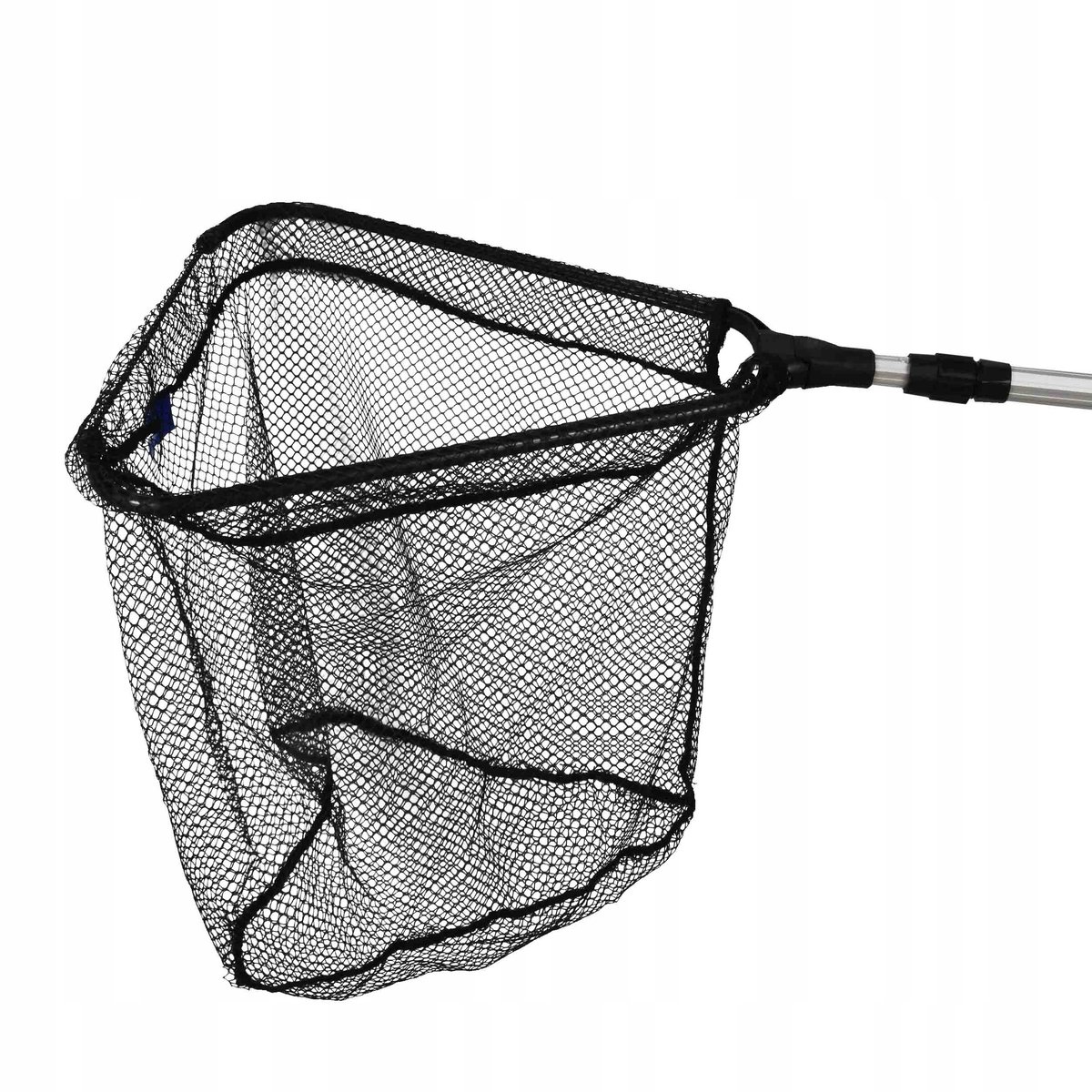 Składane podbieraki z teleskopowym uchwytem, blok łączący głowę z uchwytem wykonany z twardego tworzywa sztucznego. Szybko wysychająca, miękka siatka z oczkiem 8 mm.Długość 145 cmIlość Składów 2Długość Transportowa 65 cmWymiary kosza: A= 40 cm, H=40 cm