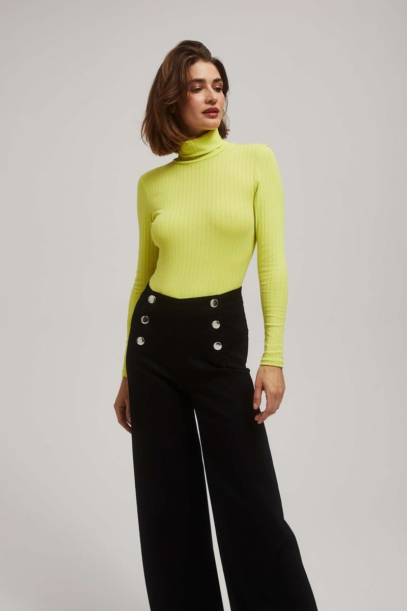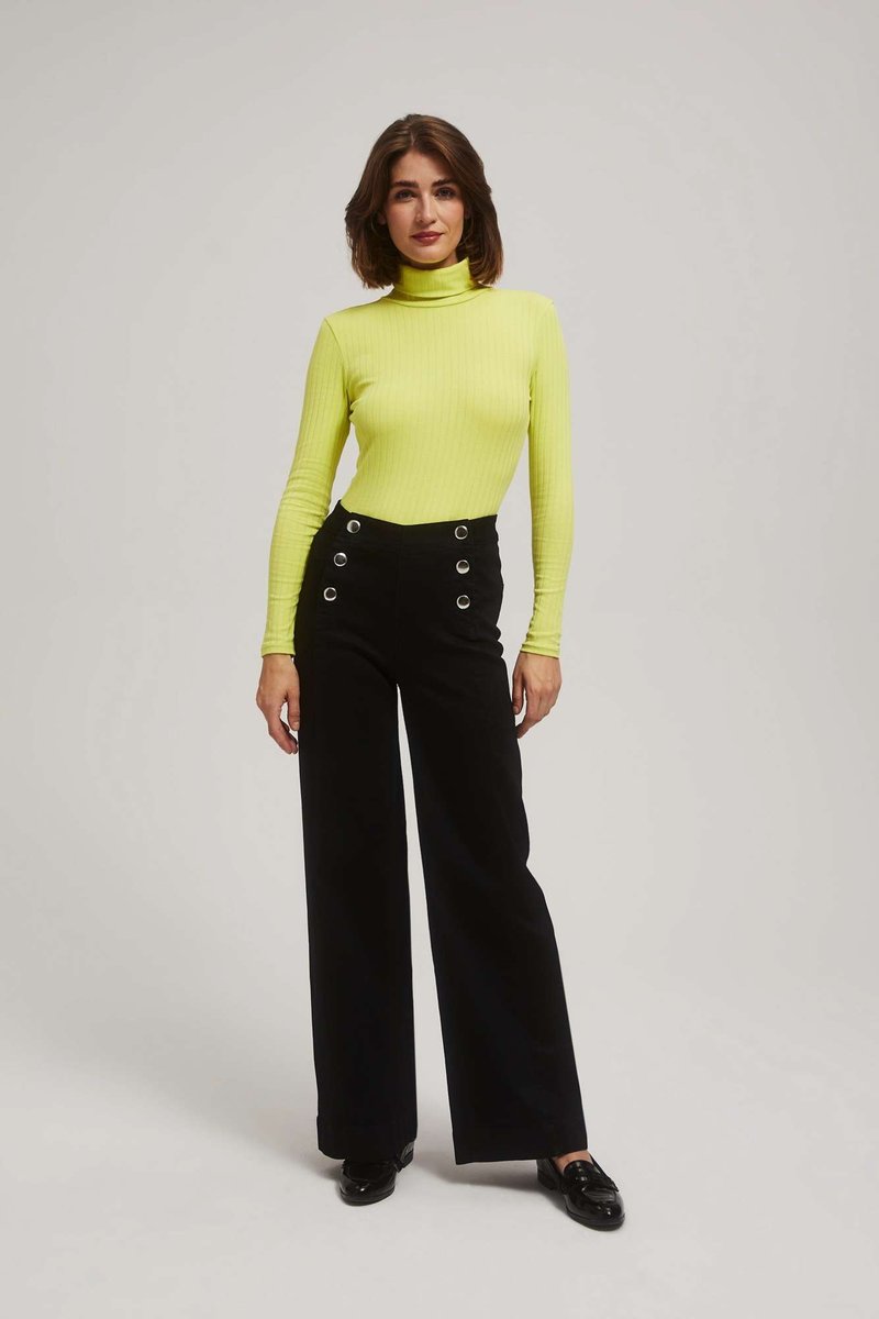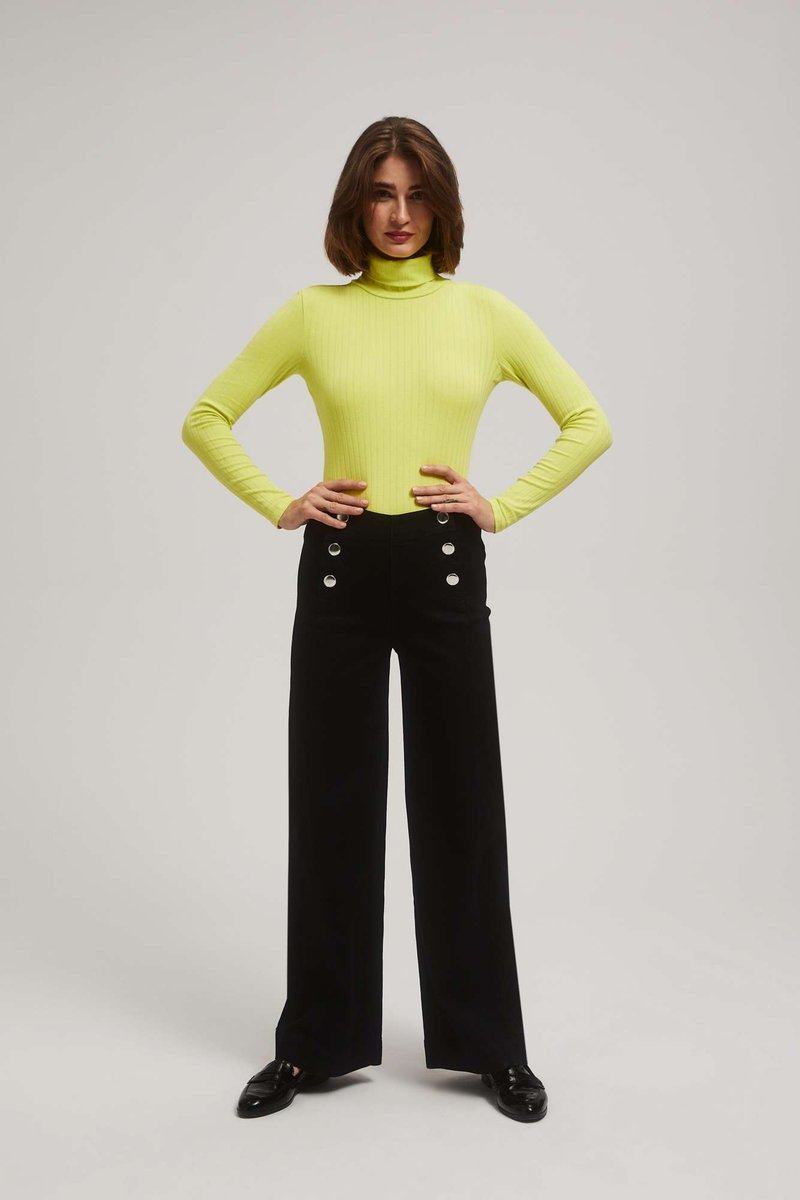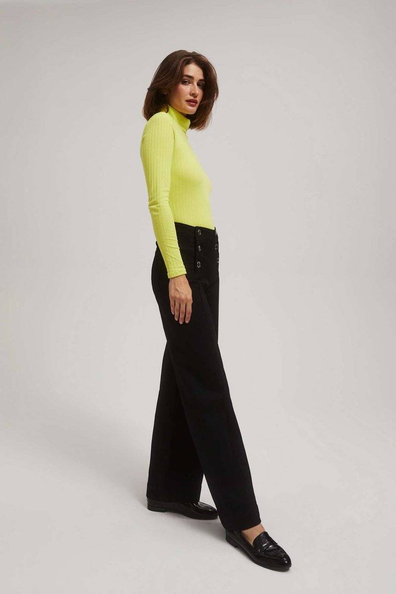 78% BAWEŁNA, 20% POLIESTER, 2% ELASTAN Unikalne, czarne jeansy bez wzoru to idealny produkt dla każdej kobiety, która ceni sobie wygodę, styl i wysoką jakość. Wykonane z wysokiej jakości bawełny, zapewniają maksymalną wygodę podczas noszenia. Dodatkowo, ozdobny pas oraz guziki nadają im oryginalności i unikalnego charakteru. Ich szerokie nogawki dodają lekkości i sprawiają, że każdy krok staje się elegancki i pełen wdzięku. Długość nogawki może być dostosowana do preferencji, zarówno długa, jak i średnia długość jest dostępna.