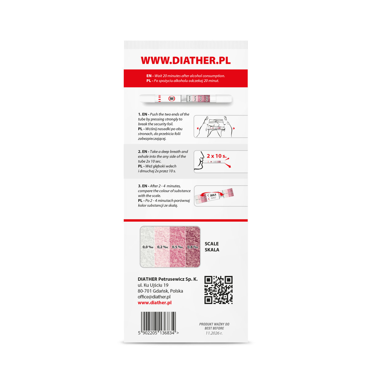 | Nazwa: | Jednorazowy alkomat alkotest atestowany alkoholomierz 1 szt. Diather |