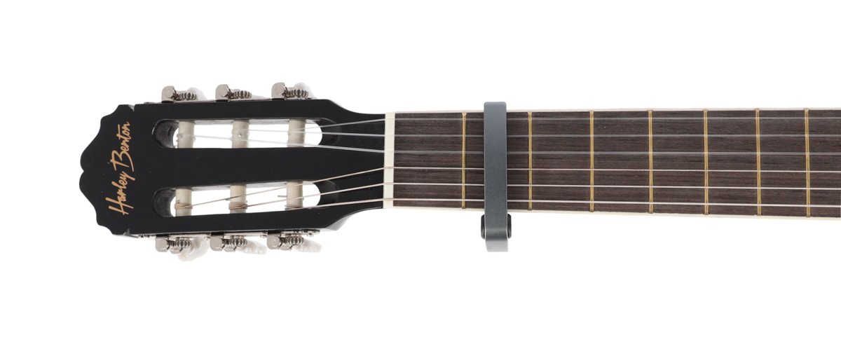 Porządny kapodaster do gitary klasycznej. Kapodaster wykonany jest z lekkiego metalu malowanego proszkowo na szary kolor. Elementy dotykające gryfu posiadają miękką, gumową nakładkę, która nie niszczy instrumentu. Sprężyna jest bardzo porządna i zapewnia skuteczny docisk wszystkich strun. Łatwy montaż