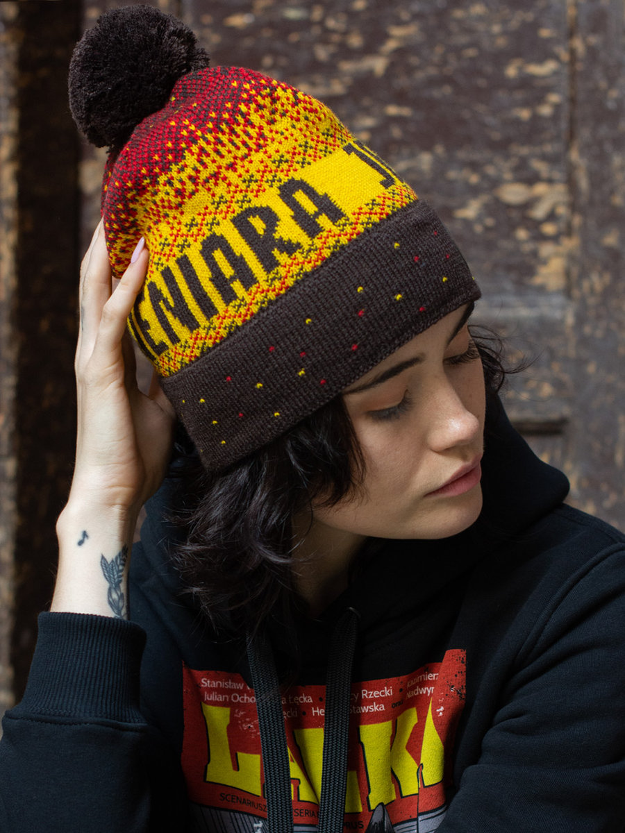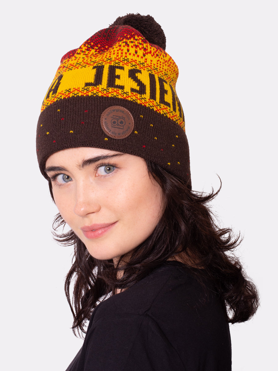 Czapka doskonale sprawdzi się jako wyjątkowy pomysł na prezent dla jesieniary. Oryginalny wzór w barwach złotej polskiej jesieni sprawi, że wyróżni się z tłumu!