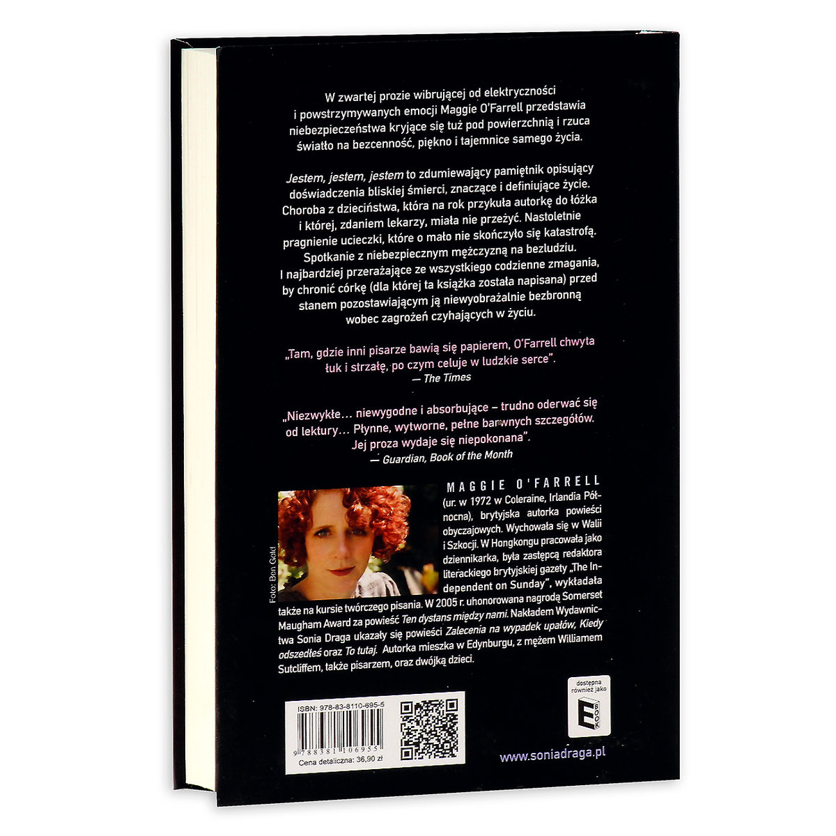 "Jestem, jestem, jestem" to zdumiewający pamiętnik opisujący doświadczenia bliskiej śmierci, znaczące i definiujące jej życie. Choroba z dzieciństwa, która na rok przykuła autorkę do łóżka i której zdaniem lekarzy miała nie przeżyć. Nastoletnie pragnienie ucieczki, które o mało nie skończyło się katastrofą. Spotkanie z niebezpiecznym mężczyzną na bezludziu. I najbardziej przerażające ze wszystkiego codzienne zmagania, by chronić córkę (dla której ta książka została napisana) przed stanem pozostawiającym ją niewyobrażalnie bezbronną wobec miriady zagrożeń czyhających w życiu.