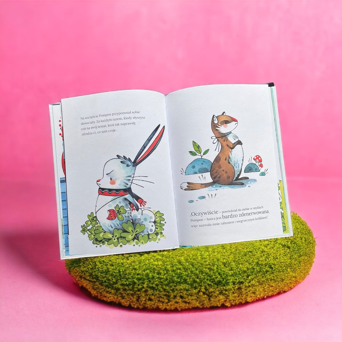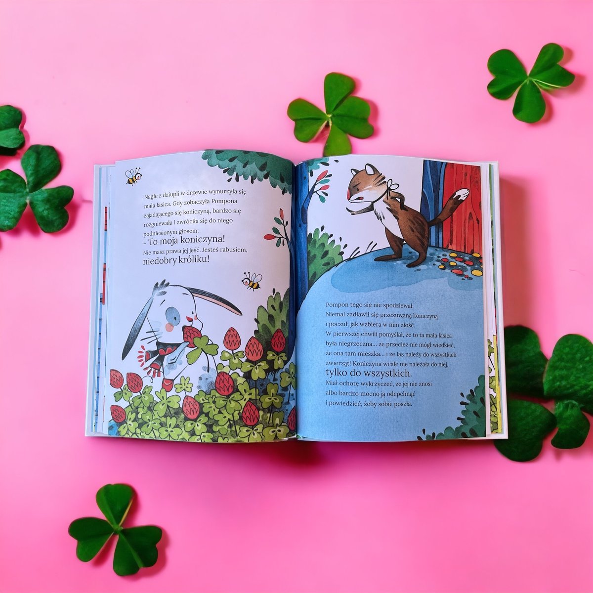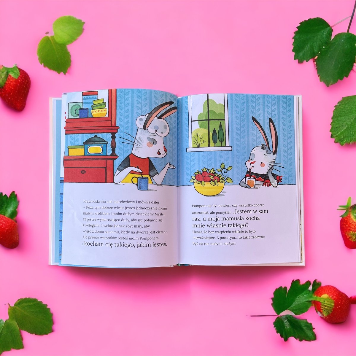 "Dla jednych będziemy „wielcy” dla innych nasze działania nie będą znaczące. Każdy z nas jest w sam raz, nawet jeśli inni myślą o nas inaczej. Rodzice głównego bohatera królika Pompona, w duchu porozumienia bez przemocy, życzliwie i łagodnie wyjaśniają mu zachowania innych zwierząt. Piękne wartości niesie ta książka. Dodatkowo przedstawione w niej sytuacje są bliskie dziecku."