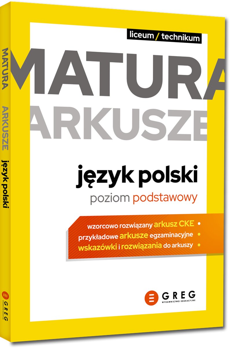 Zdaj maturę z języka polskiego bez stresu z najnowszymi arkuszami od Wydawnictwa GREG! Aktualne wydanie jest w pełni zgodne z obowiązującymi obecnie wymaganiami maturalnymi na poziomie podstawowym, więc masz gwarancję, że przećwiczysz dokładnie ten materiał, który pojawi się na maturze!