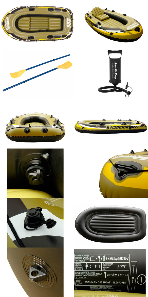 Duży 3-osobowy, nadmuchiwany ponton wędkarski, o wymiarach 252cm x 125cm x 40cm, który posiada: 2 pompowane siedzenia, 2 komory powietrzne, pompowaną podłogę, zawory ciśnieniowe (bostońskie) szybkiego pompowania i wypuszczania powietrza, dwudrożną pompkę, 2 wiosła o długości 124 cm, 4 uchwyty na wiosła, 2 uchwyty na wędkę, linkę do chwytania dookoła pontonu, zestaw naprawczy. Wykonany wysoko cząsteczkowego PVC, który jest całkowicie odporny na benzynę, olej, światło słoneczne i wodę słoną.