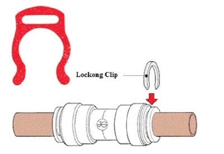 Klips do złączek typu szybkozłącze, który blokuje wężyk przed przypadkowym wysunięciem się przewodu ze złączki.
