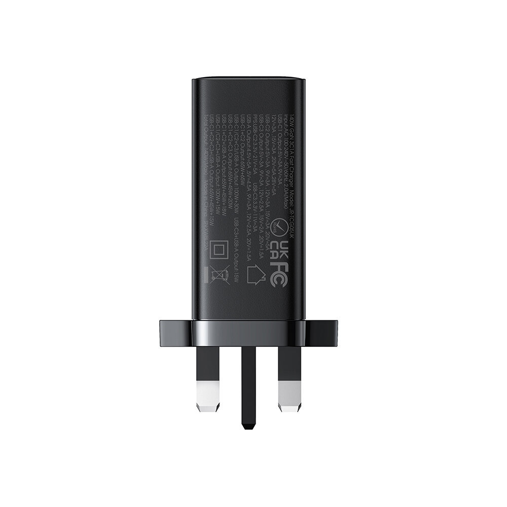Szybka ładowarka UK GaN Joyroom JR-TCG05UK o mocy do 140W z portami 3x USB-C i 1x USB-A + kabel USB-C / USB-C o mocy do 240W i długości 1.2 m