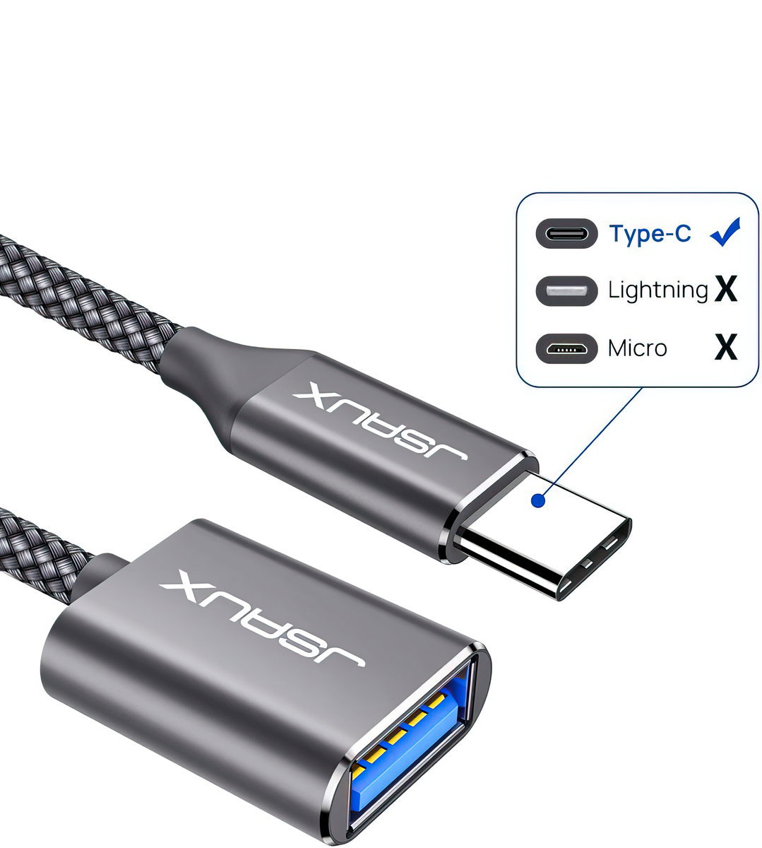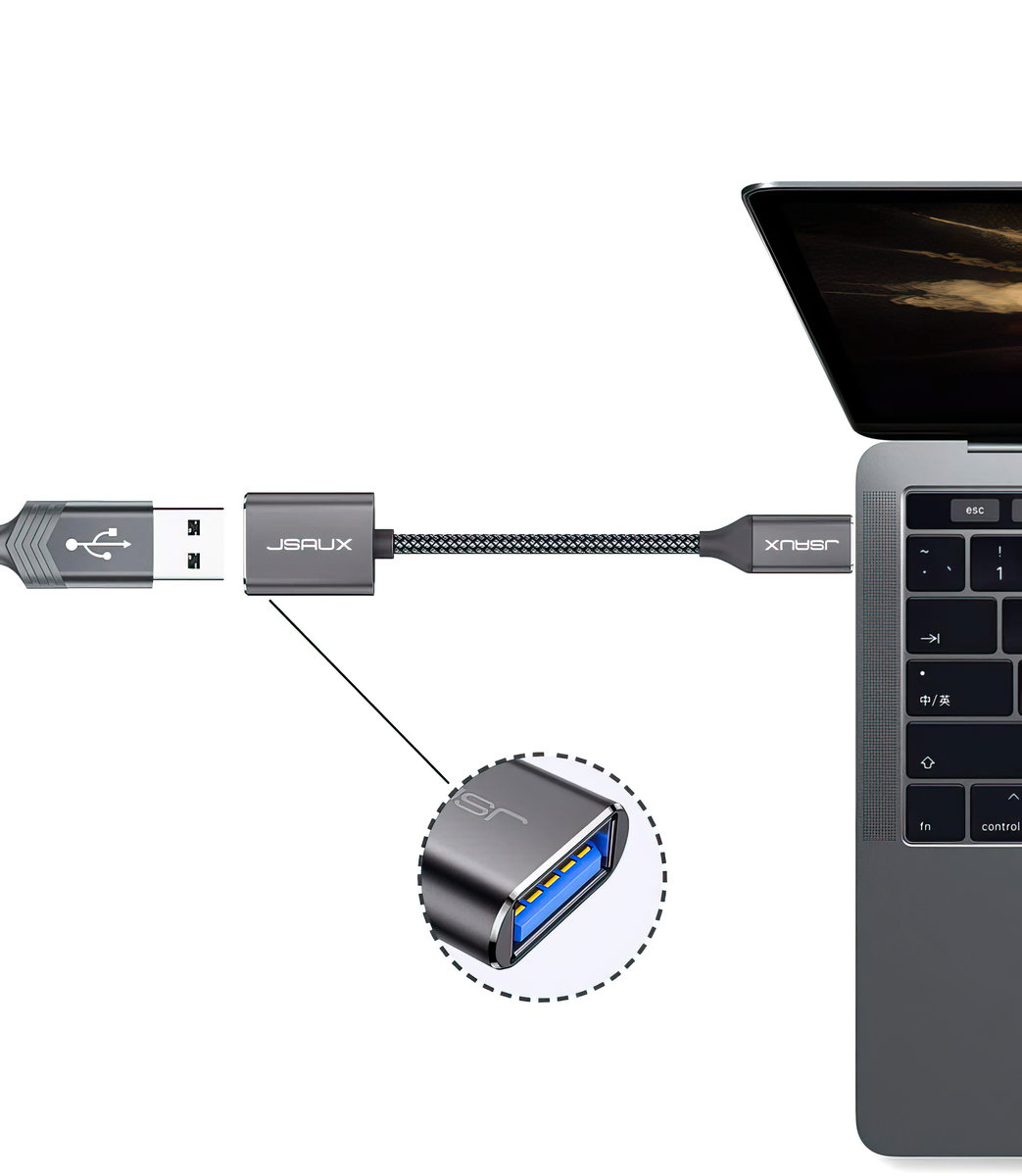 ✅ Adapter JSAUX USB-C do USB-A 3.0 OTG to kompaktowe i wydajne rozwiązanie, które pozwala na bezproblemowe podłączenie urządzeń z tradycyjnym złączem USB-A do nowoczesnych urządzeń z wejściem USB-C