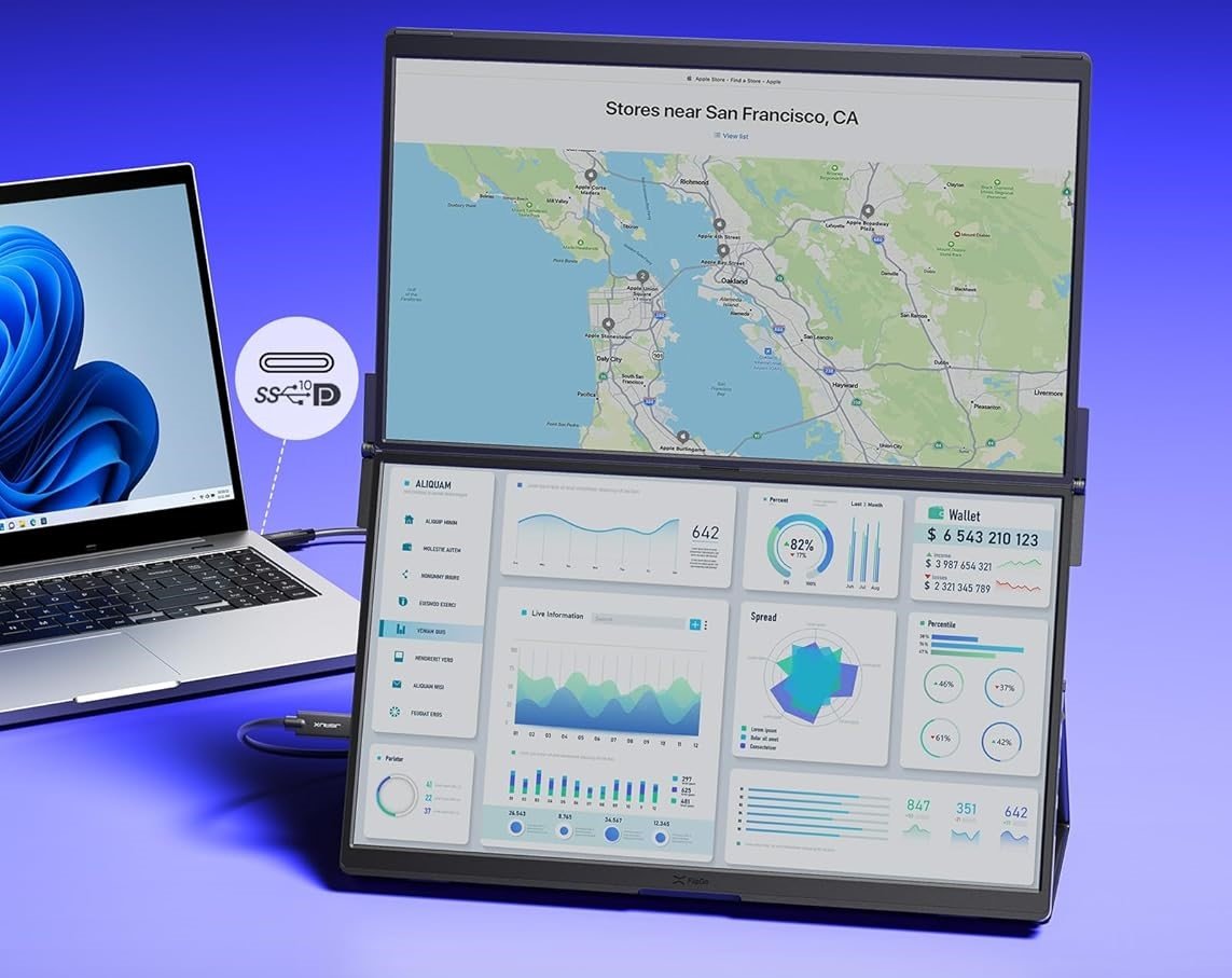 Funkcja Plug and Play, tylko dla systemu Windows: potrójne rozszerzenie ekranu do laptopa JSAUX FlipGo wymaga tylko jednego kabla USB-C do jednoczesnego aktywowania dwóch wyświetlaczy — prawdziwe ...
