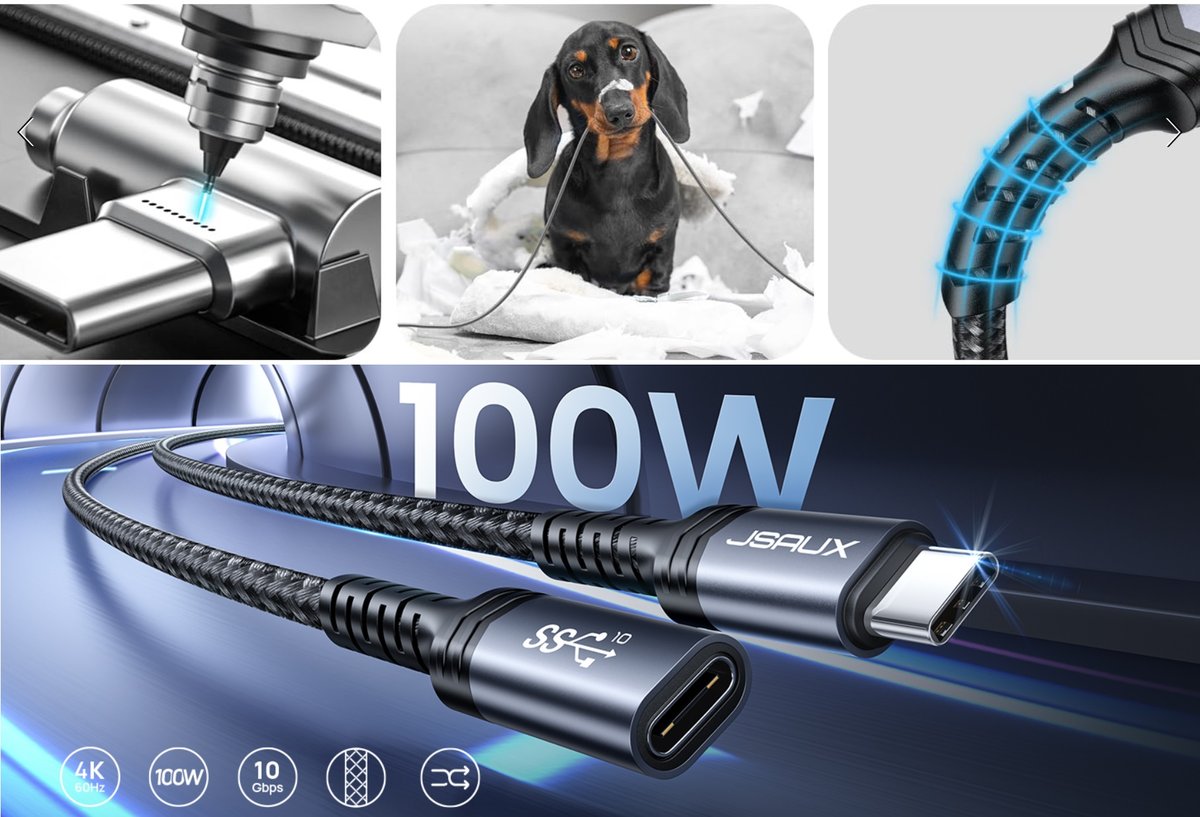 | Tytuł: | JSAUX Przedłużacz USB-C 3.2 100W 5A 10Gbps iPhone MacBook iPad Magsafe 4k 60Hz 2m |