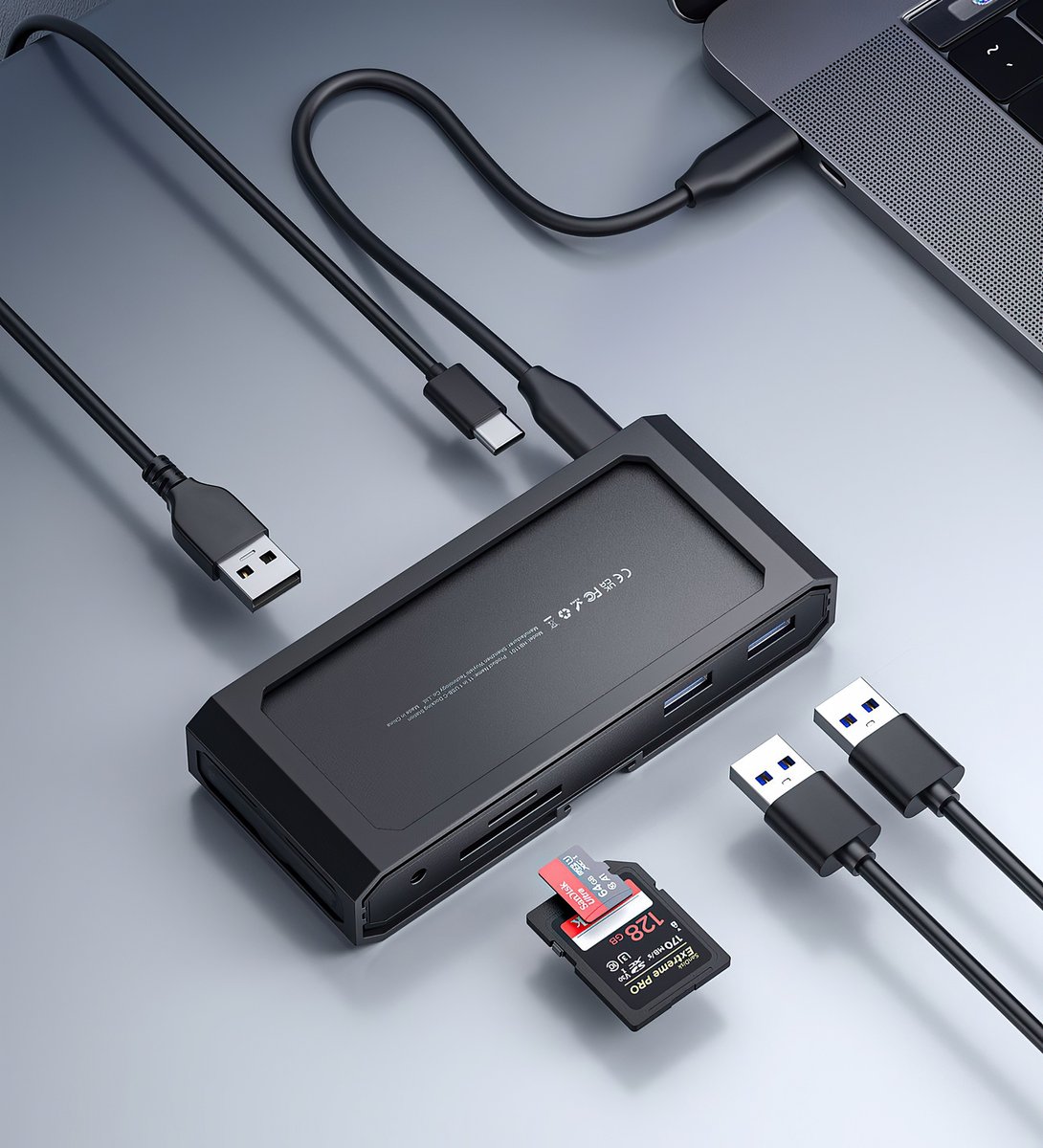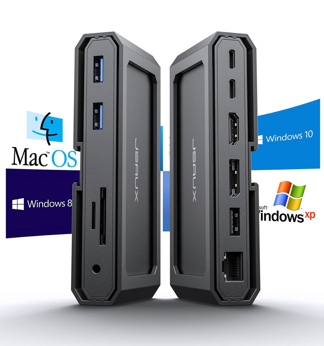 ⭐ 11-w-1 funkcjonalność: Adapter JSAUX HB1101 umożliwia jednoczesne podłączenie różnych urządzeń, takich jak monitory, klawiatury, myszy, słuchawki, kontrolery, drukarki, skanery, karty pamięci i wiele innych, dzięki złączom HDMI, DP, USB-C, USB-A, Ethernet, SD, microSD oraz audio 3,5 mm.
