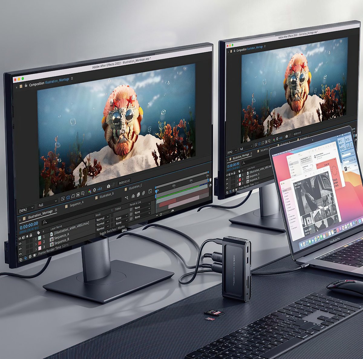 ⭐ Ta innowacyjna stacja dokująca pozwala na podłączenie wielu urządzeń peryferyjnych oraz monitorów za pomocą jednego kabla USB-C, co sprawia, że jest doskonała zarówno dla graczy, jak i profesjonalistów, którzy chcą uzyskać maksymalną wygodę i funkcjonalność.