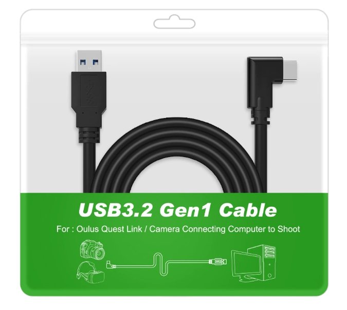 Nowy Profesjonalny kabel USB-C 3.2 90°pozwalającym nam na podłączenie Oculus Quest oraz Quest 2 do komputera PC. Tylko dzięki temu kablowi gogle VR będą miały pełną funkcjonalność. Jest kompatybilny z oryginalnym oprogramowaniem Oculus.