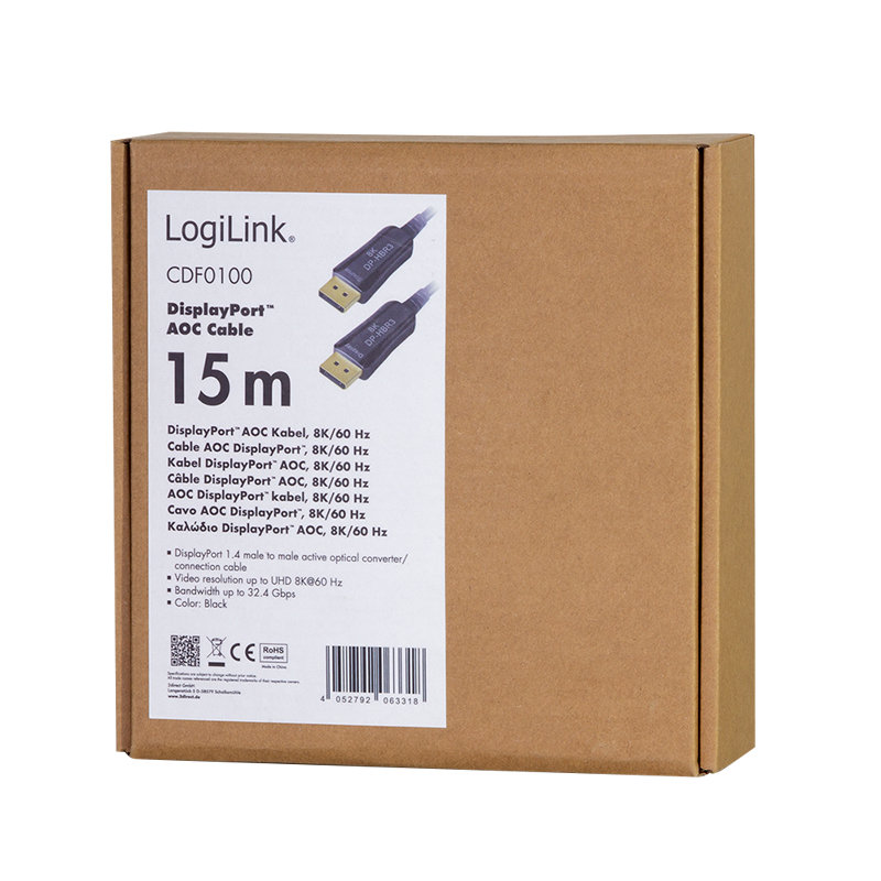 Kabel DisplayPort 1.4 LogiLink CDF0100 8K/60 Hz, AOC, M/M 15m