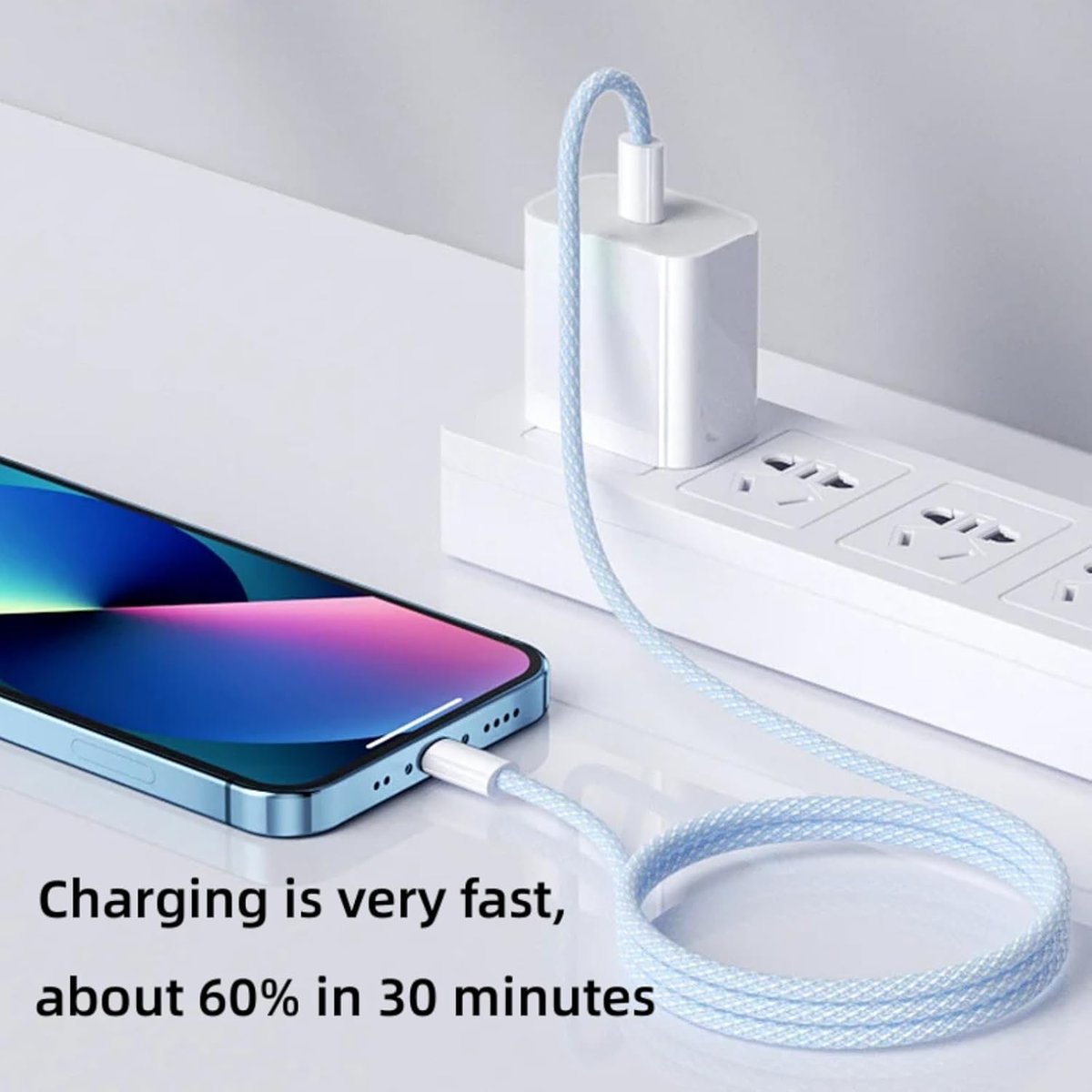 【Wytrzymały nylonowy pleciony kabel】Miękki i trwały dwukolorowy nylonowy splot, kolorowe dopasowanie kolorów, wytrzymały i odporny na zużycie, zdolny wytrzymać ponad 20000 testów zginania. Wykonane z materiału termoizolacyjnego i trudnopalnego, ładowanie z większym spokojem.