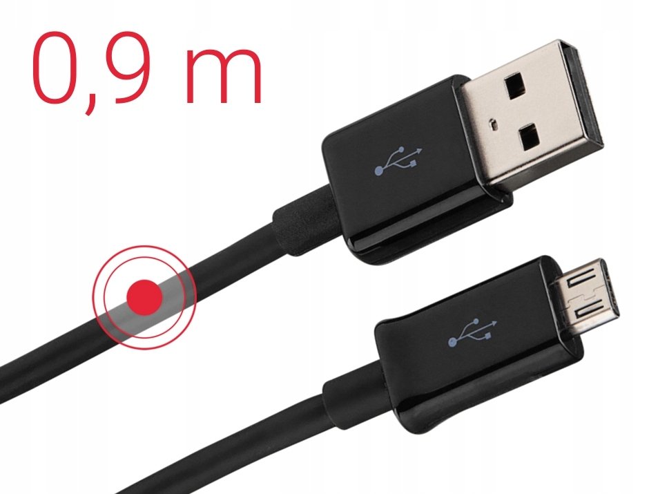 USB 2.0 USB A - MICRO USB B 0,9M, KOSZOWYDo połączenia komputera PC, notebooka, MacBooka, ładowarki z tabletem, smartfonem, zasilaczem, głośnikiem Bluetooth lub kontrolerem gier w celu przesyłania ...