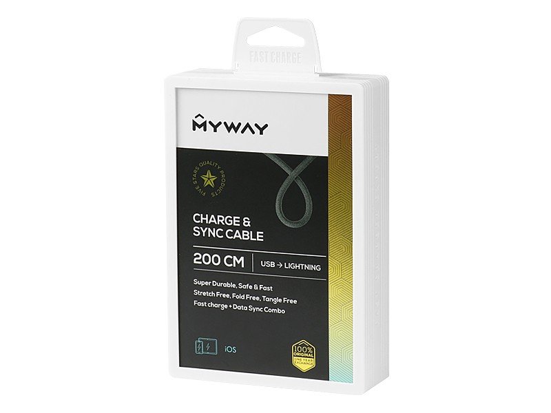 | Nazwa: | Kabel MYWAY do ładowania i synchronizacji, mikrofibrowy, 200 cm, USB / Lightning |