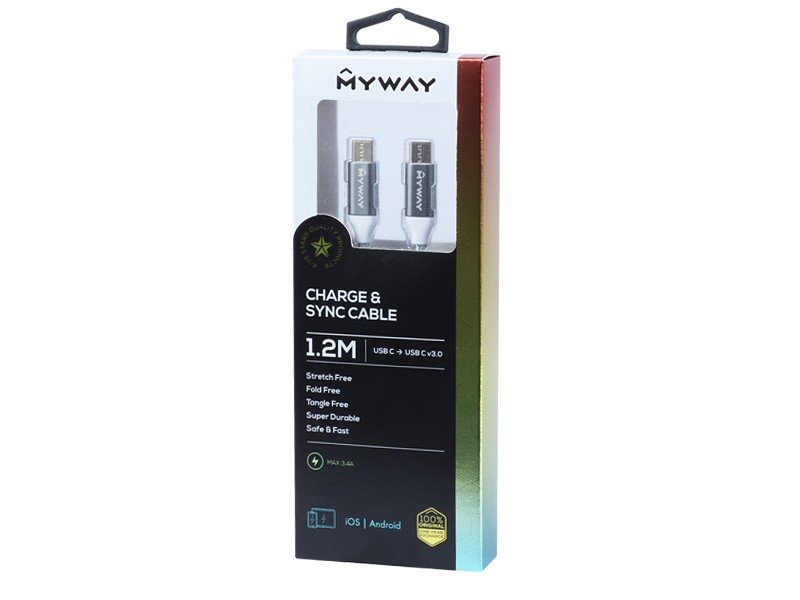 | Nazwa: | Kabel MYWAY do ładowania i synchronizacji, w oplocie z mikrofibry, 120 cm, USB-C / USB-C v3.0 |