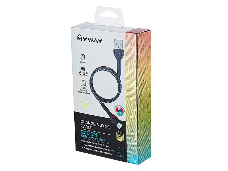 Kabel MYWAY do ładowania i synchronizacji, w oplocie z mikrofibry, podświetlenie LED, 200 cm, USB micro USB