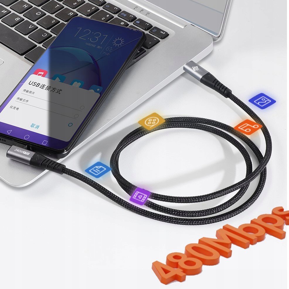 ✅ Kabel pozwala na bardzo szybkie ładowanie (do 48V/5A, PD 240W), a także szybki transfer plików (do 480 Mb/s) pomiędzy urządzeniami wyposażonymi w wejście USB-C.