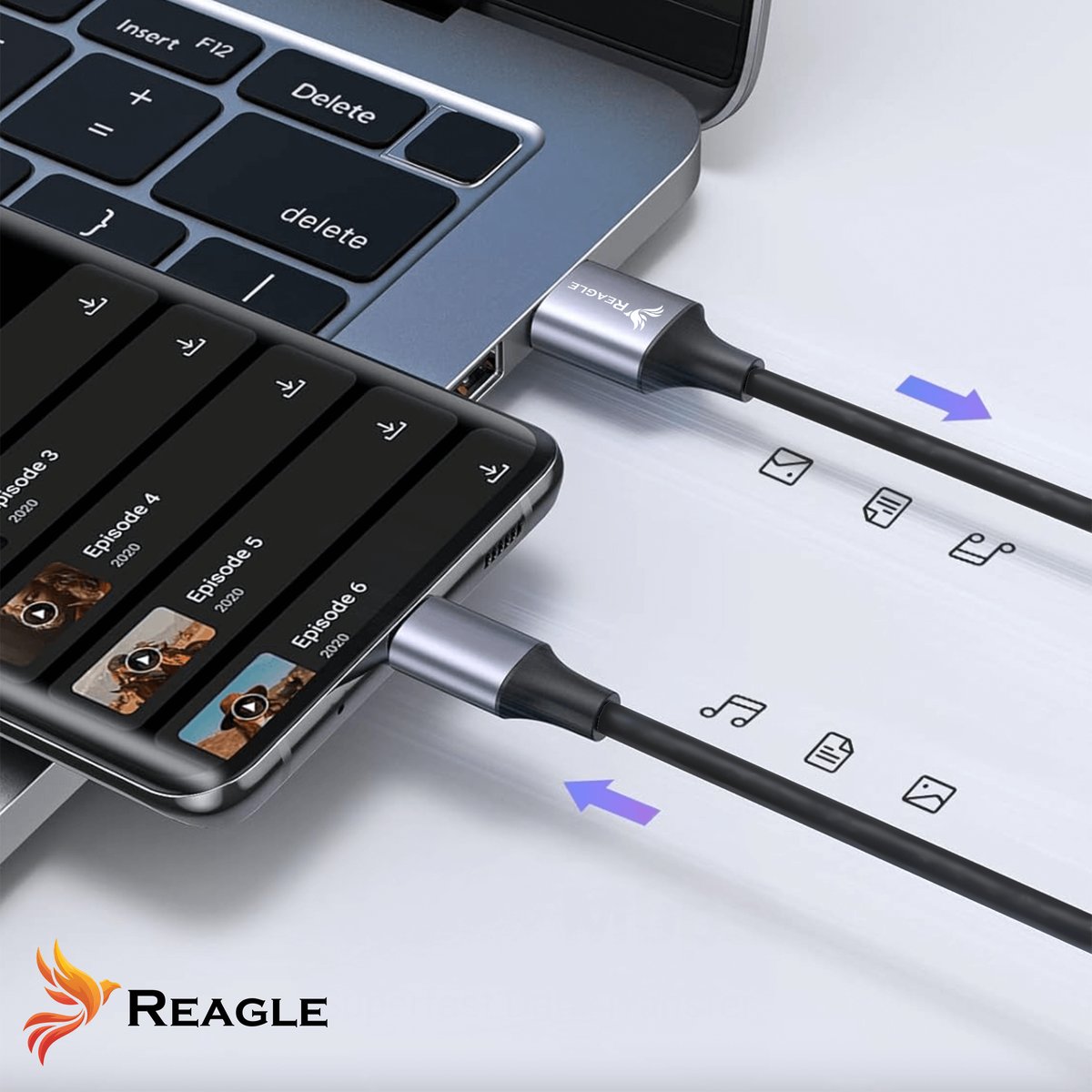 Dzięki technologii USB 3.2 Gen 2 kabel Reagle umożliwia przesył danych z prędkością do 10 gigabitów na sekundę.