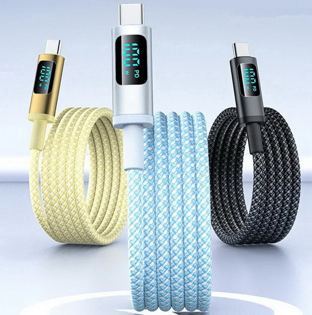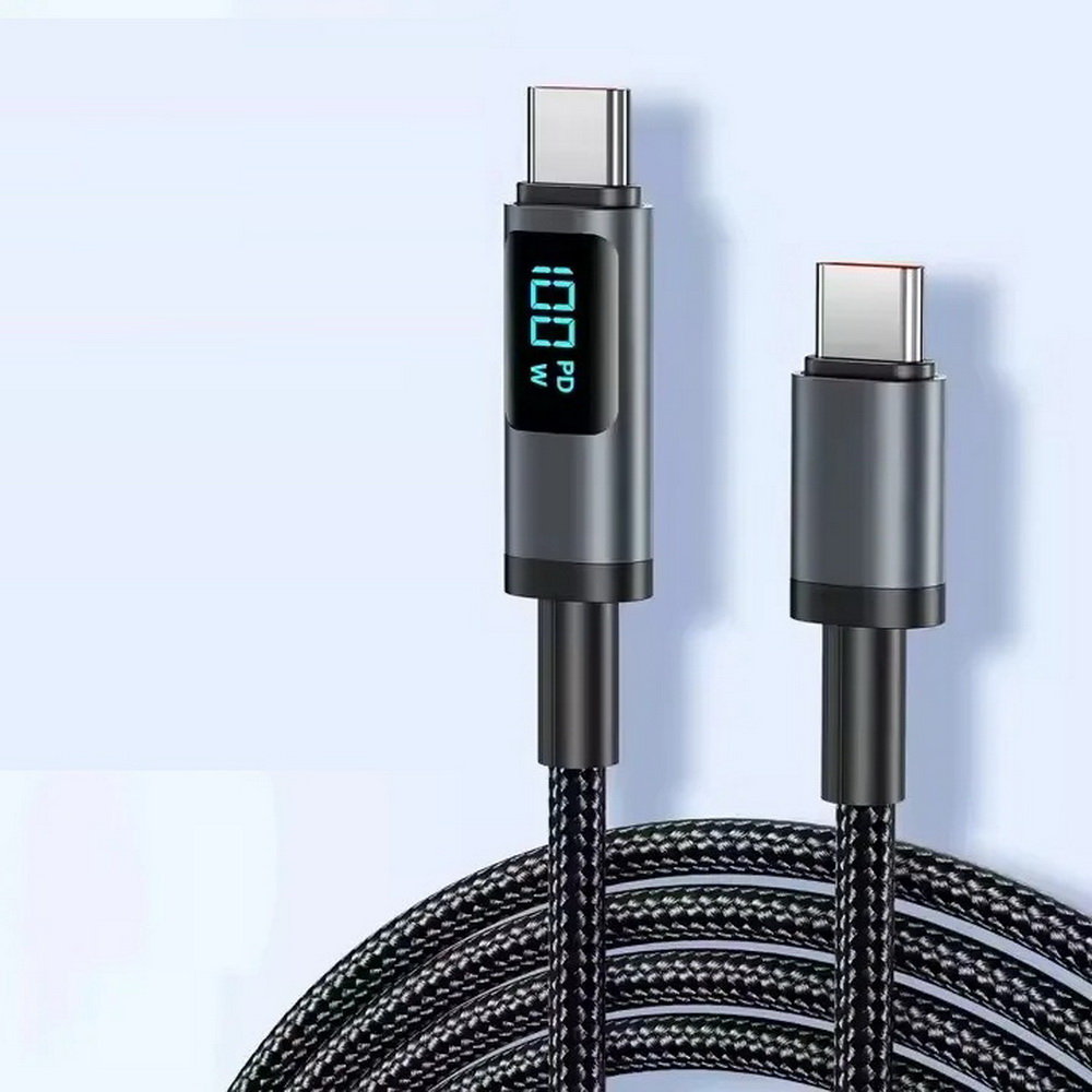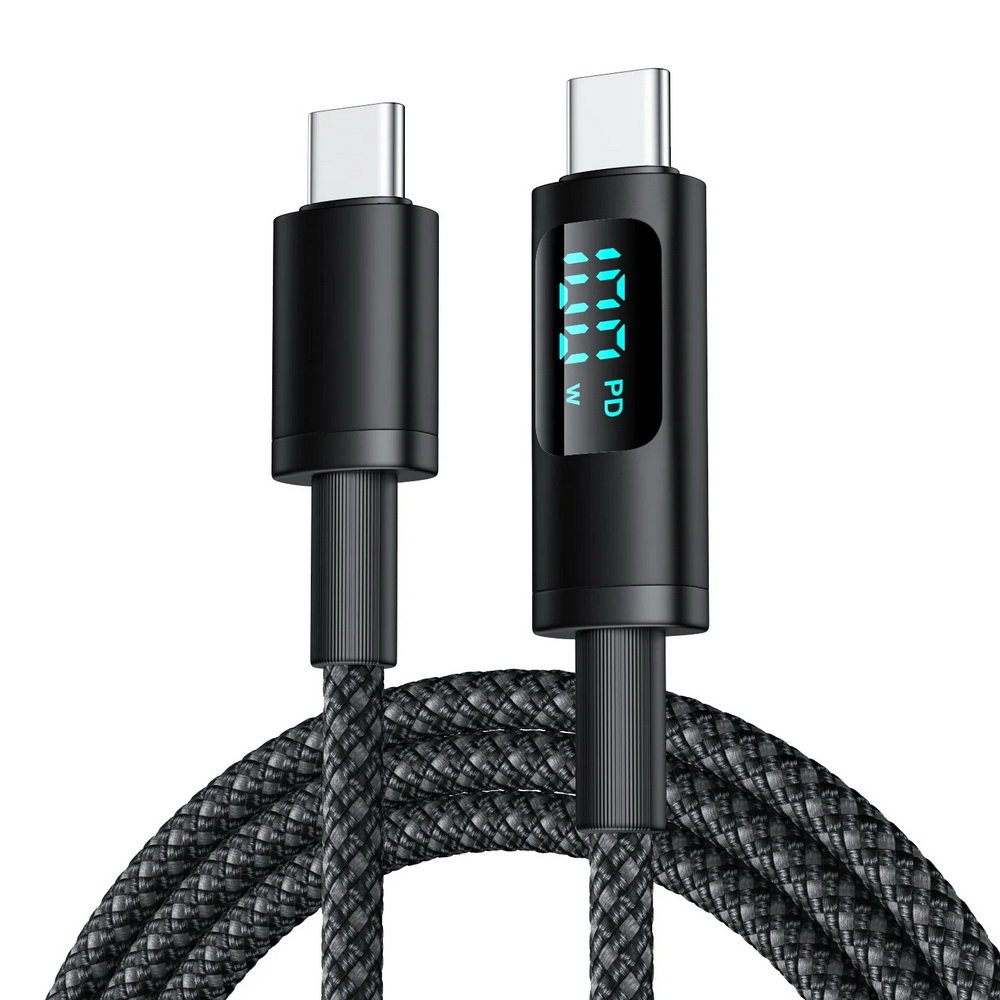 Właśnie zrecenzowałem Kabel przewód USB-C do USB-C Type-C z wyświetlaczem LED do szybkiego ładowania PD 100W nylonowy oplot 100cm 1m (Czarny)
