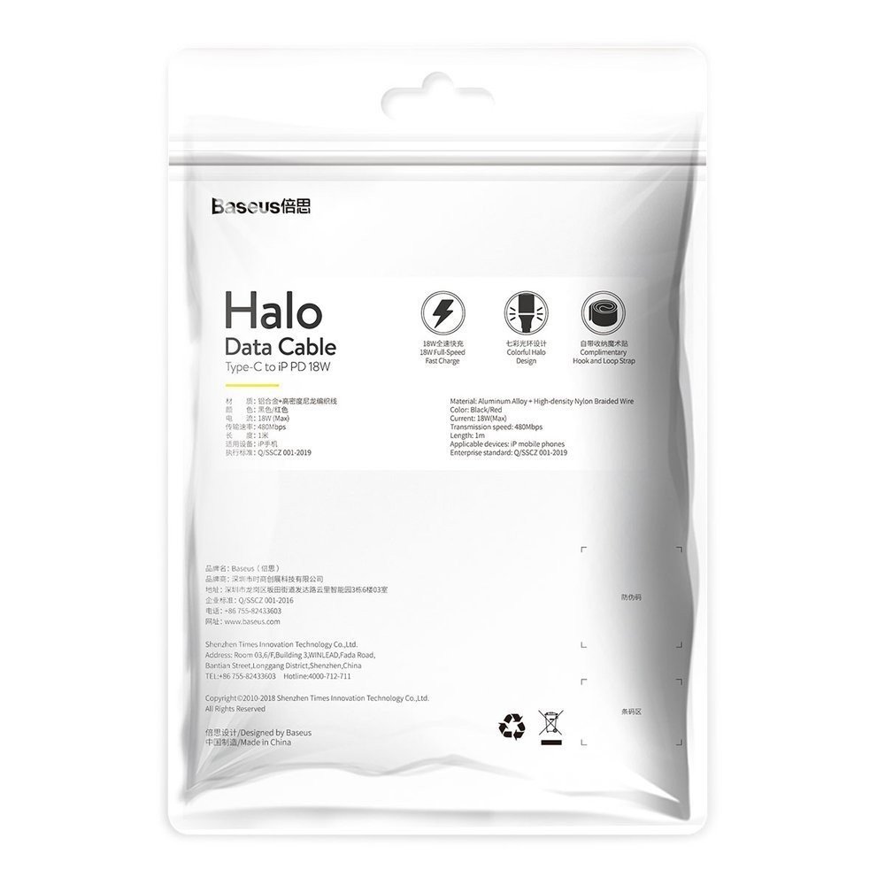 Baseus Halo podświetlany kabel przewód USB Typ C PD 18W - Lightning z diodą LED 1m: Podświetlany Kabel USB Typ C - Lightning z diodą LED Dioda LED – ...