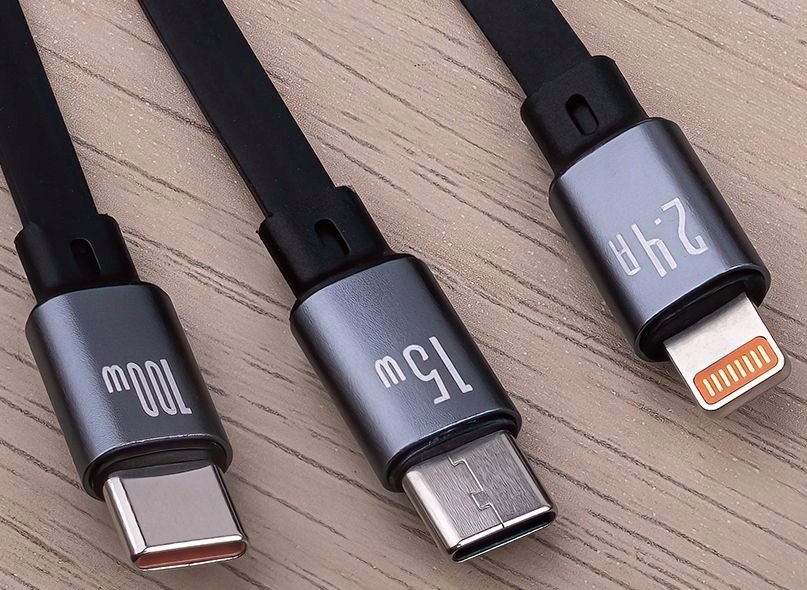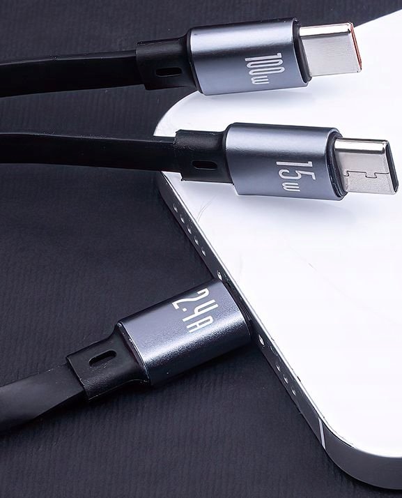 Kabel Zwijany USB 3w1 2 x USB - C, 1 x 8-pin Lightning 100W