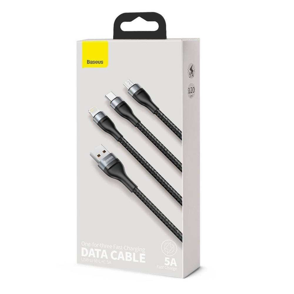 | Nazwa: | Kabel USB 3w1 Baseus Flash Series, USB-C + micro USB + Lightning, 40W, 5A, 1.2m (czarny) |