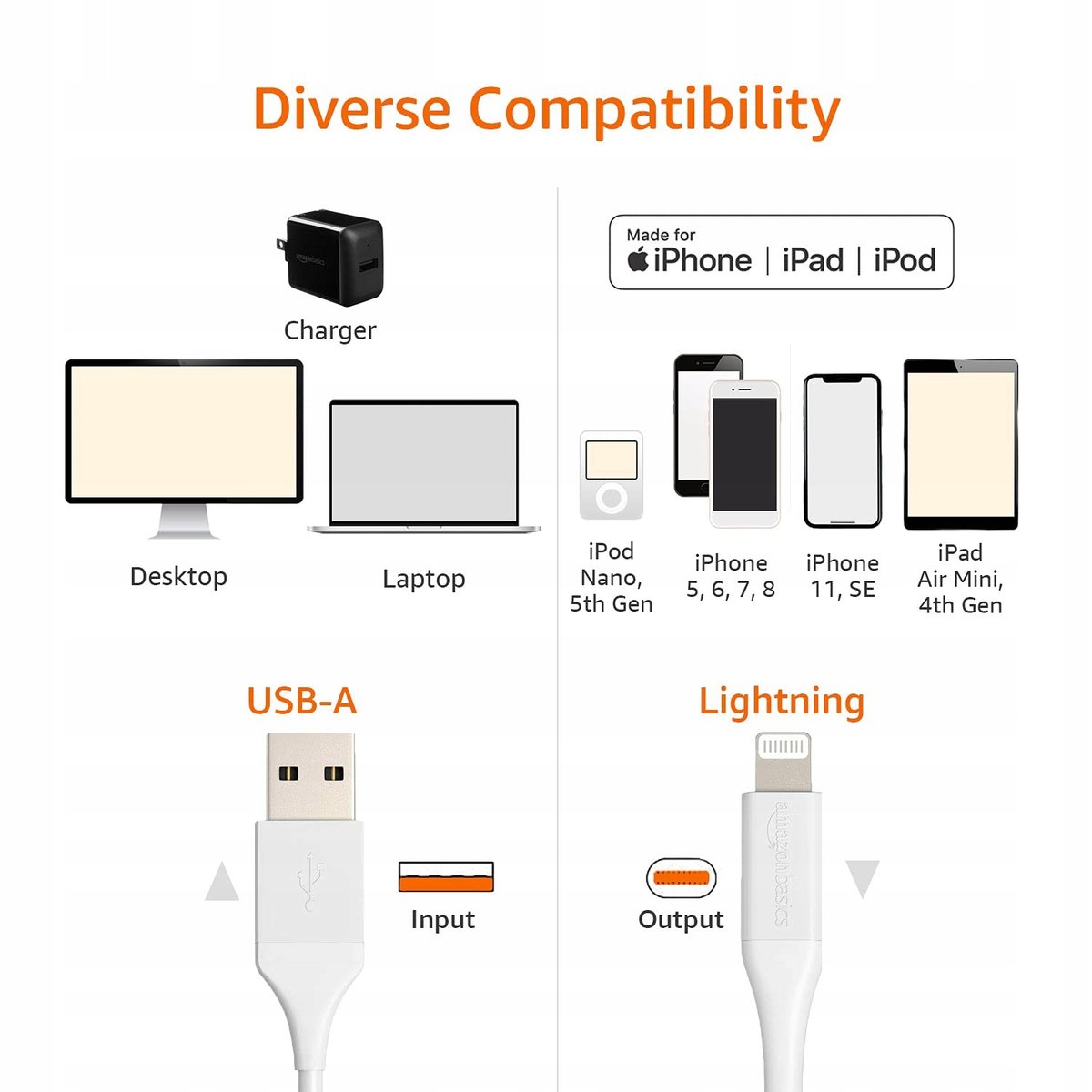 AmazonBasics Lightning na USB A — kolekcja zaawansowana, ładowarka do iPhone'a z certyfikatem MFi