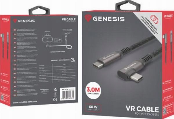 | Tytuł: | Kabel USB-C 3.2 3m Genesis PD 60W do VR czarny |