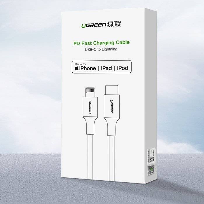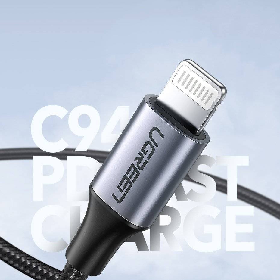 Kabel UGREEN posiada certyfikat Apple MFI, co oznacza, że jest w pełni bezpieczny dla Twojego smartfona, w przeciwieństwie do wielu innych nieoryginalnych przewodów na rynku. Końcówka C94 pozwala na ładowanie technologią Power Delivery, czyli szybkiego ładowania.