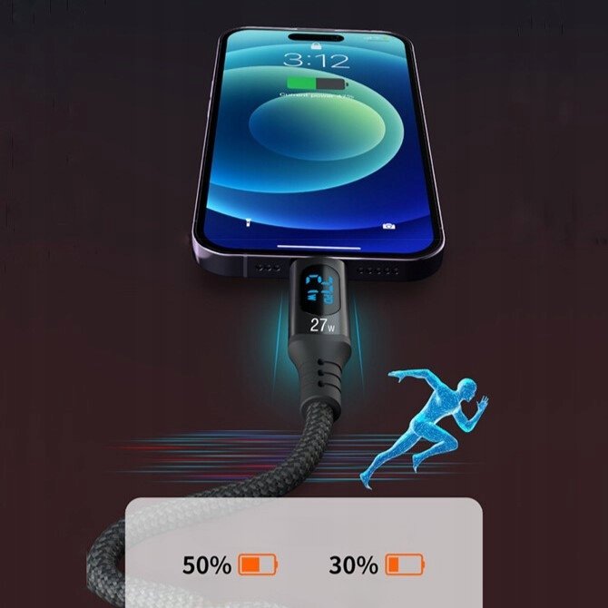Właśnie zrecenzowałem Kabel USB C Lightning do szybkiego ładowania PD 27W 3A 100cm + dane + LCD