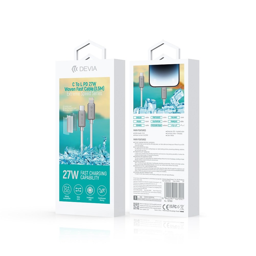 | Nazwa: | Kabel USB-C - lightning iPhone PD 27W 3A 1,5 metra Devia |