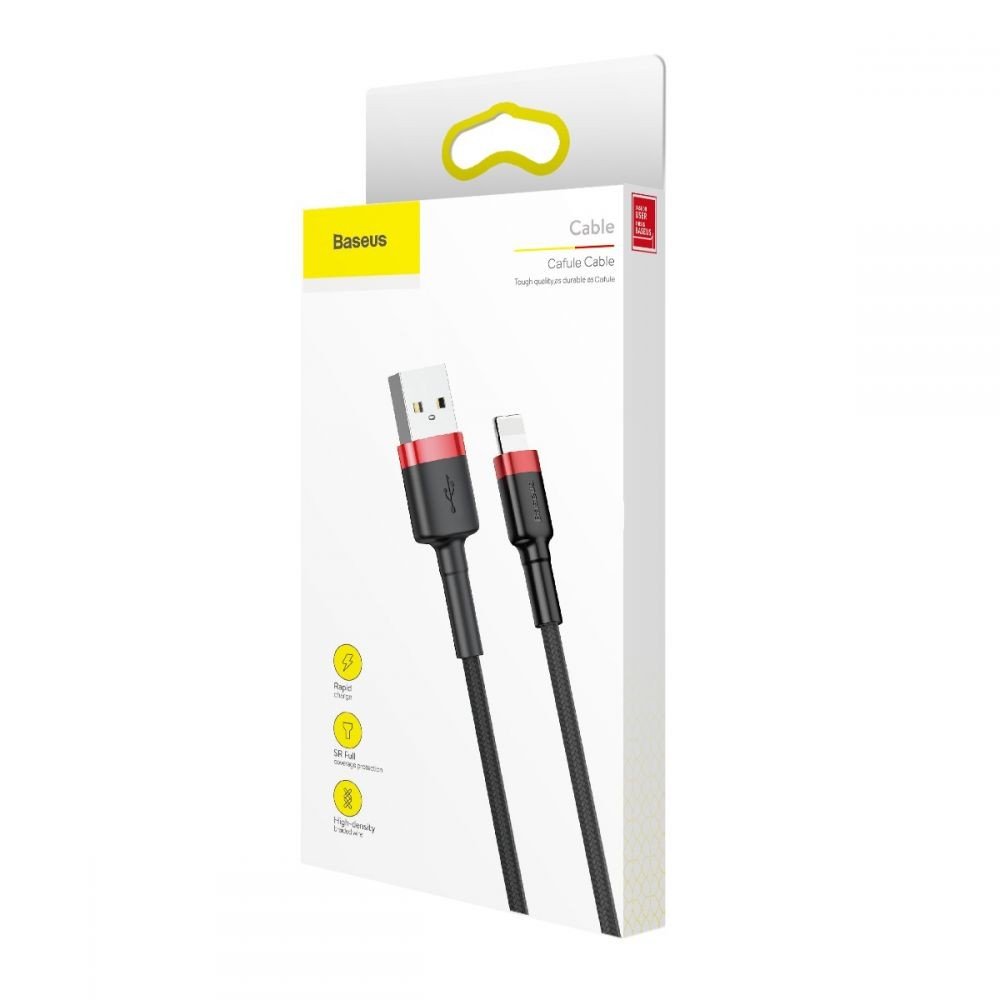 Baseus Cafule Cable: Wytrzymały kabel USB / Lightning w nylonowym oplocie Błyskawiczne i bezpieczne ładowanie – Natężenie rzędu 2.4A i przewód z czystej ...