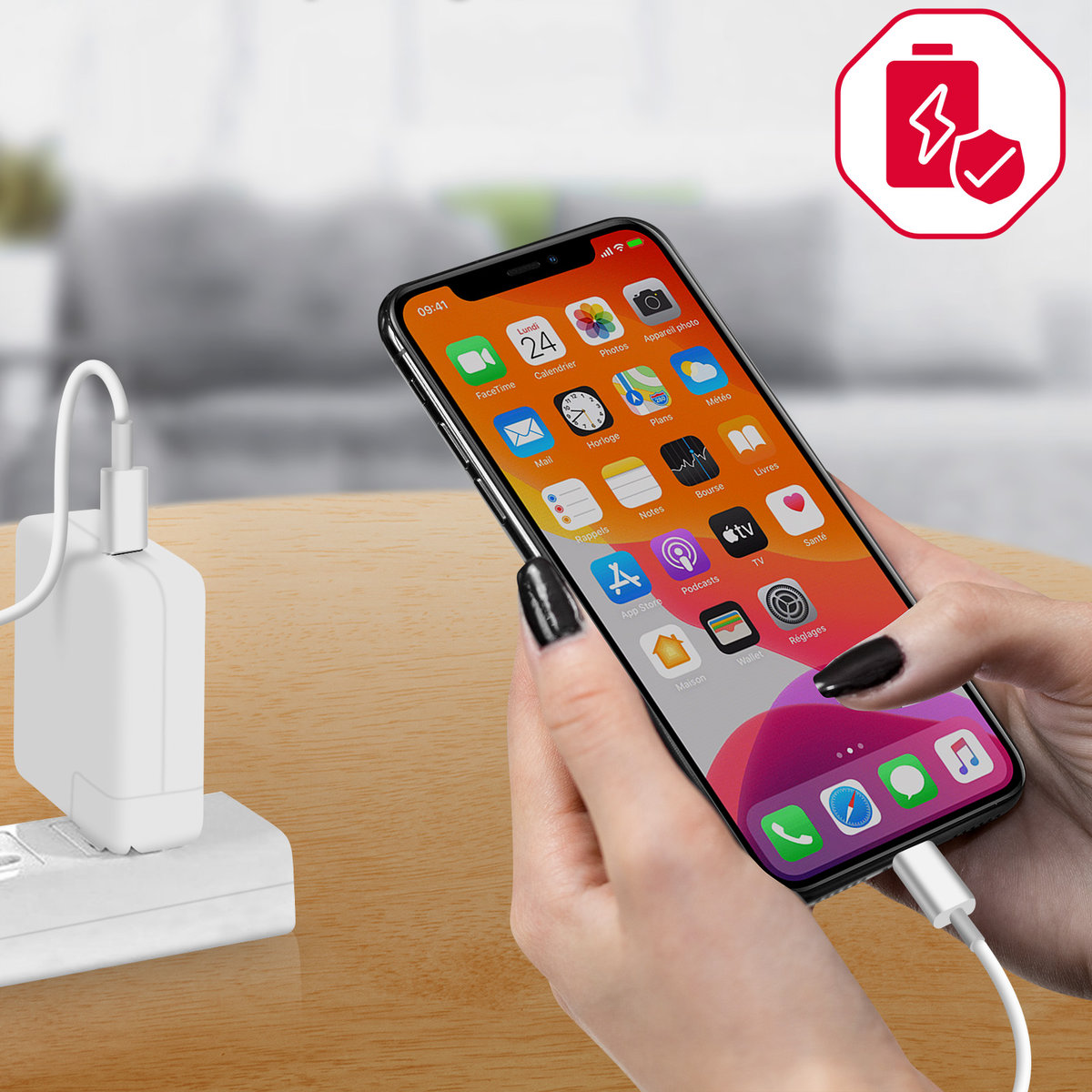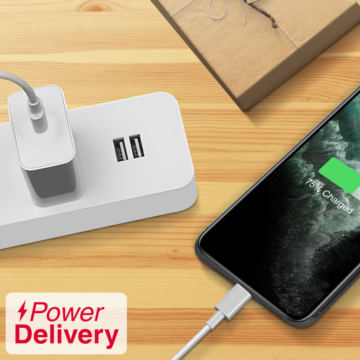 Kabel USB-C do Lightning sygnowany Maxlife. Wyposażony w technologię Power Delivery 20W. Szybkie i bezpieczne ładowanie. Synchronizacja danych. Długość 2M. Kompatybilny ze wszystkimi urządzeniami z portem Lightning.