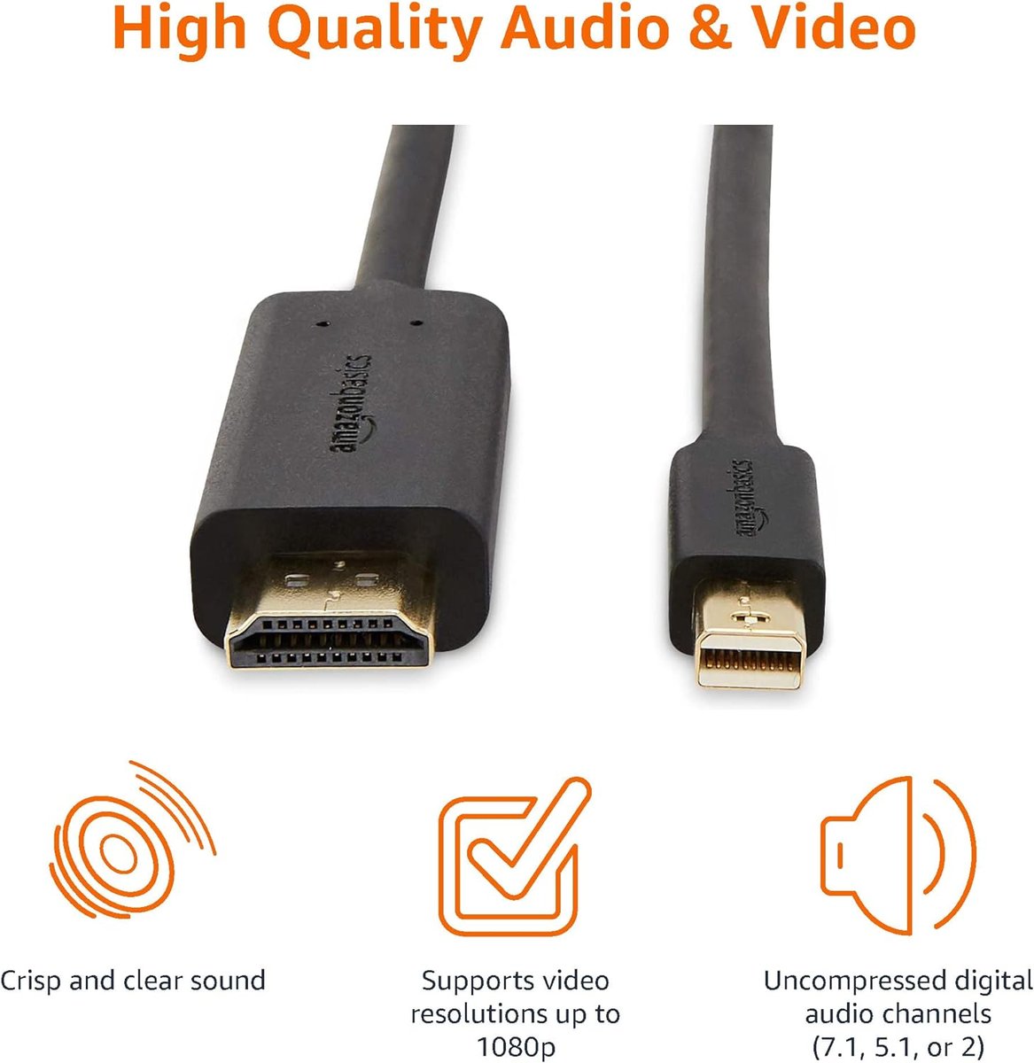 Kabel AMAZON Basics mini DisplayPort — HDMI jest kompatybilny z rozdzielczością obrazu Full HD przy 60 Hz. Dzięki temu uzyskasz najwyższą jakość przesyłanego obrazu z ograniczoną ilością opóźnień.