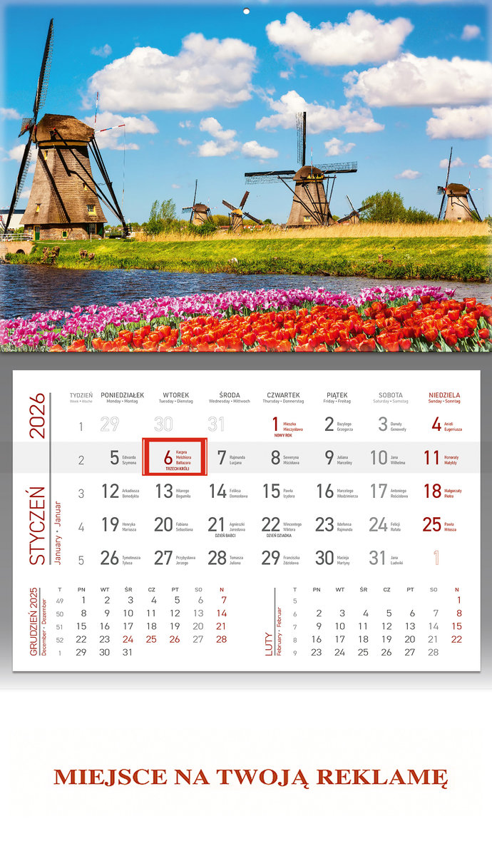 | Nazwa: | Kalendarz ścienny 2026 miesięczny, Wokół Nas, Wiatraki |