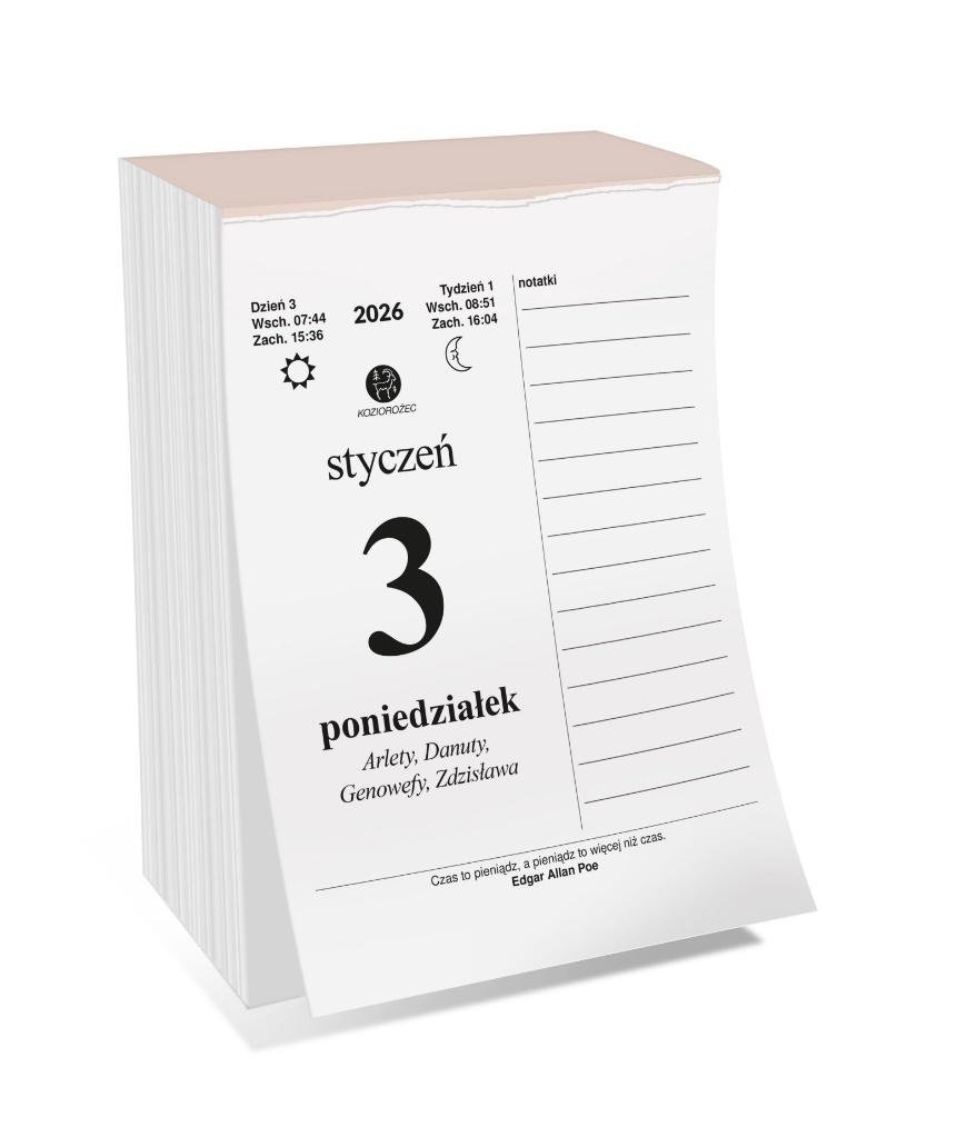 Kalendarz ścienny, na każdy dzień roku z kartkami do wydzierania. 736 stron z przepisami i poradami. Wymiary 85x130x35 mm