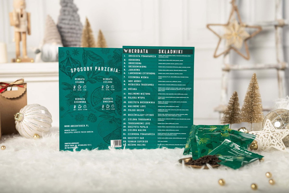 Kalendarz adwentowy z herbatą choinka stojąca 3D Green Touch